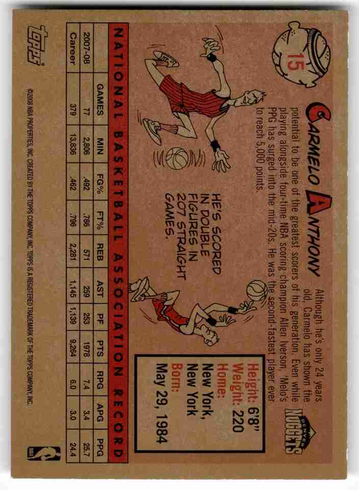 2008-09 Topps 1958-59 Variations Carmelo Anthony #15 Denver