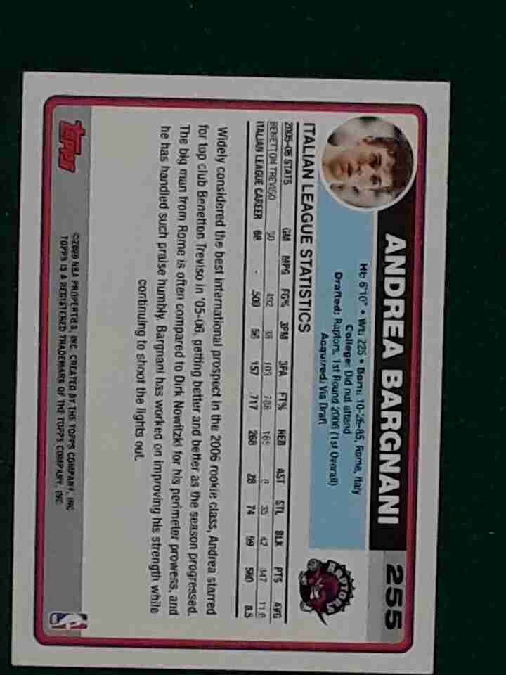 06-07 Topps NBA Basketball #255 Andrea Bargnani Rookie Card RC