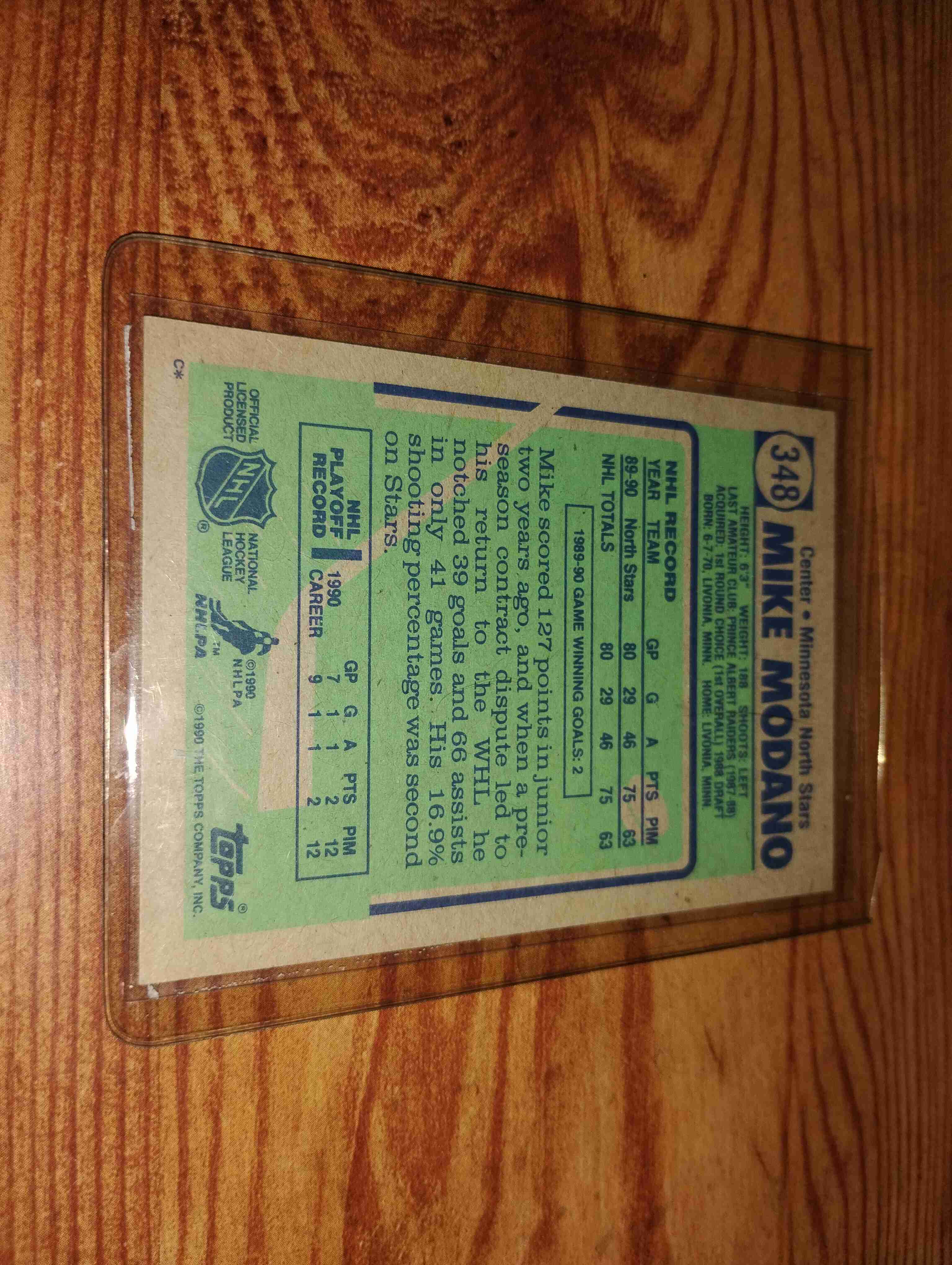 MIKE MODANO 1990 TOPPS ROOKIE CARD #348-NORTH STARS