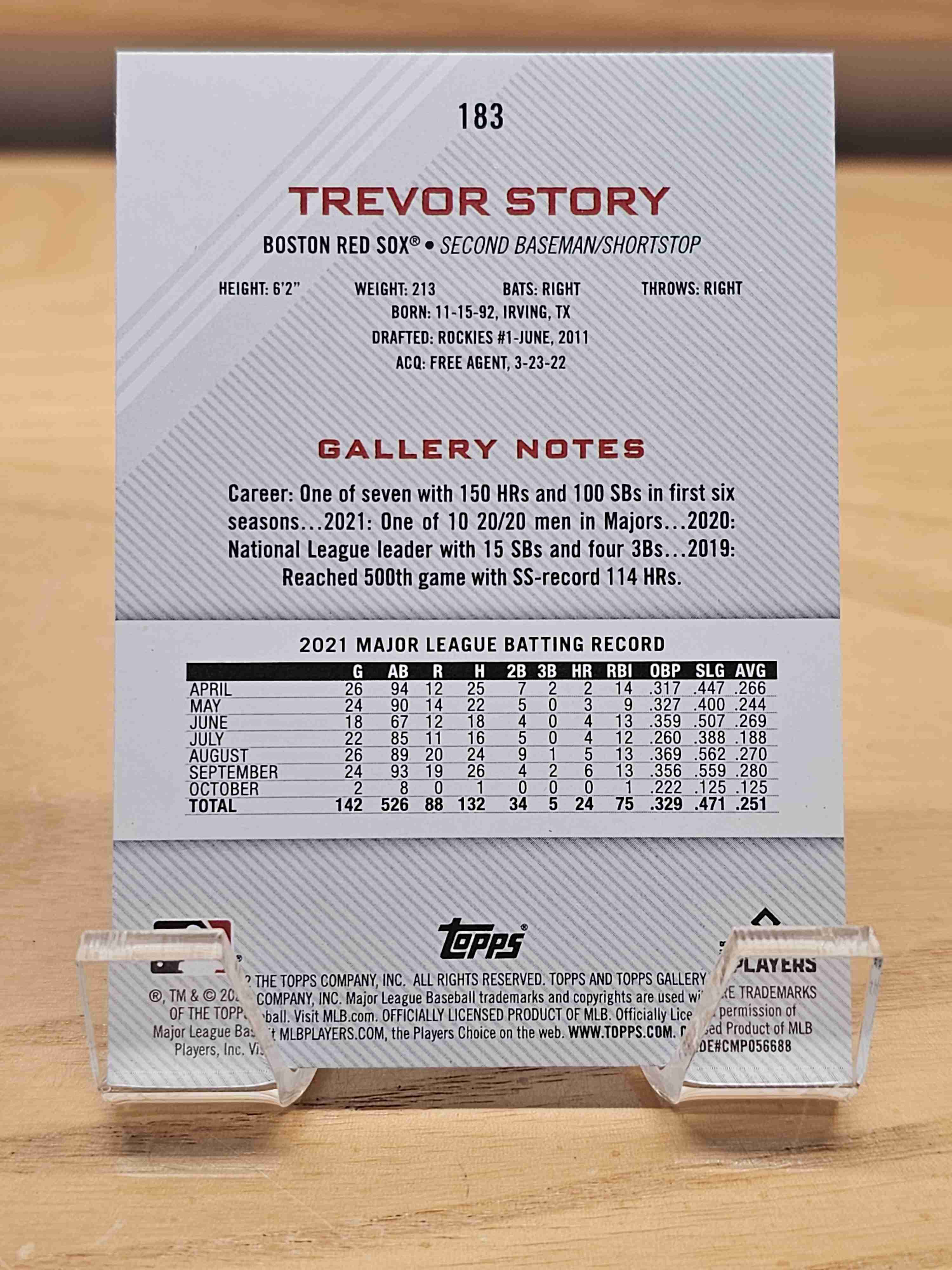 2022 Topps Gallery Trevor Story Boston Red Sox #183