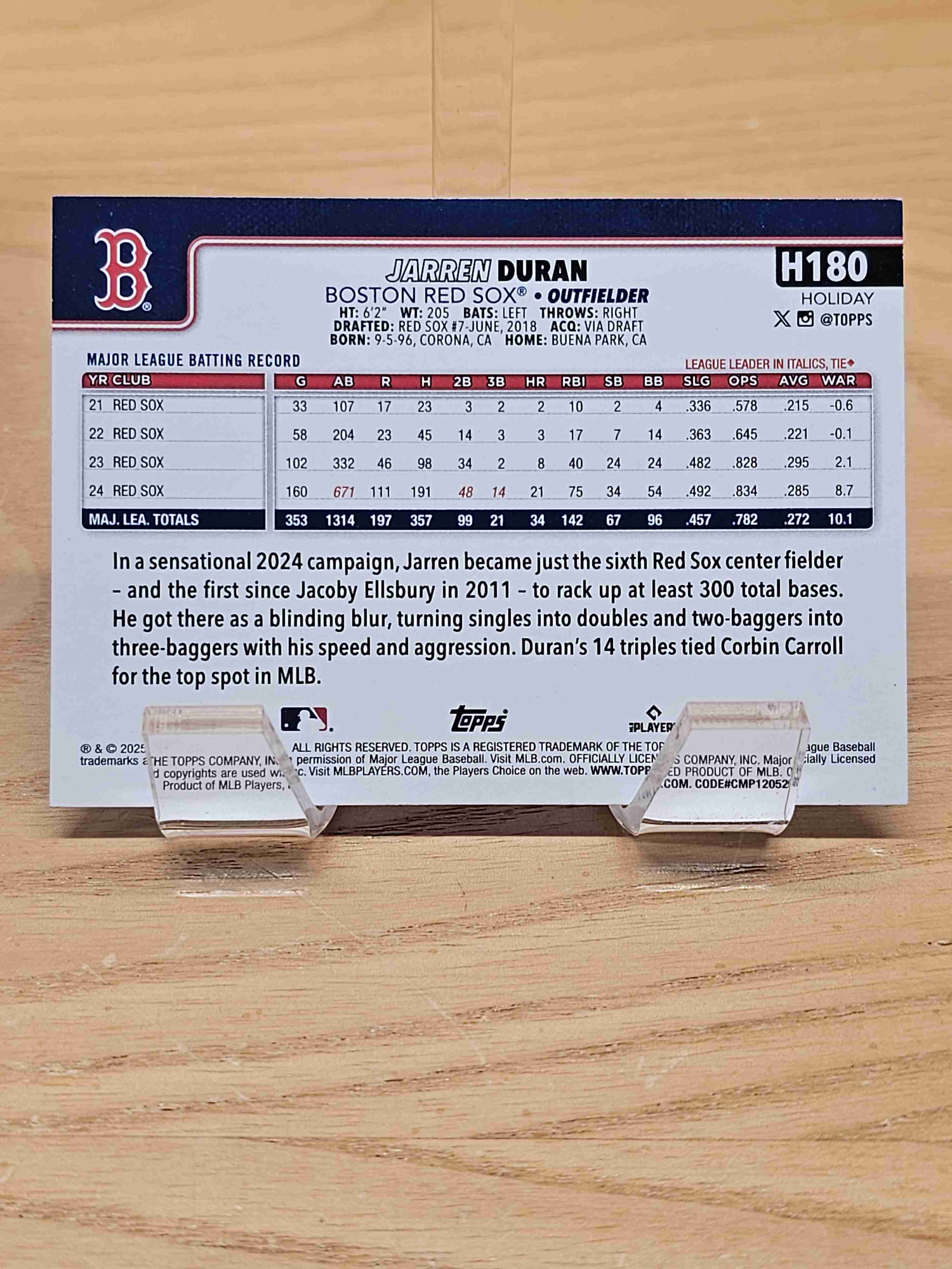 2025 Topps Holiday Baseball Jarren Duran Boston Red Sox Card #H180