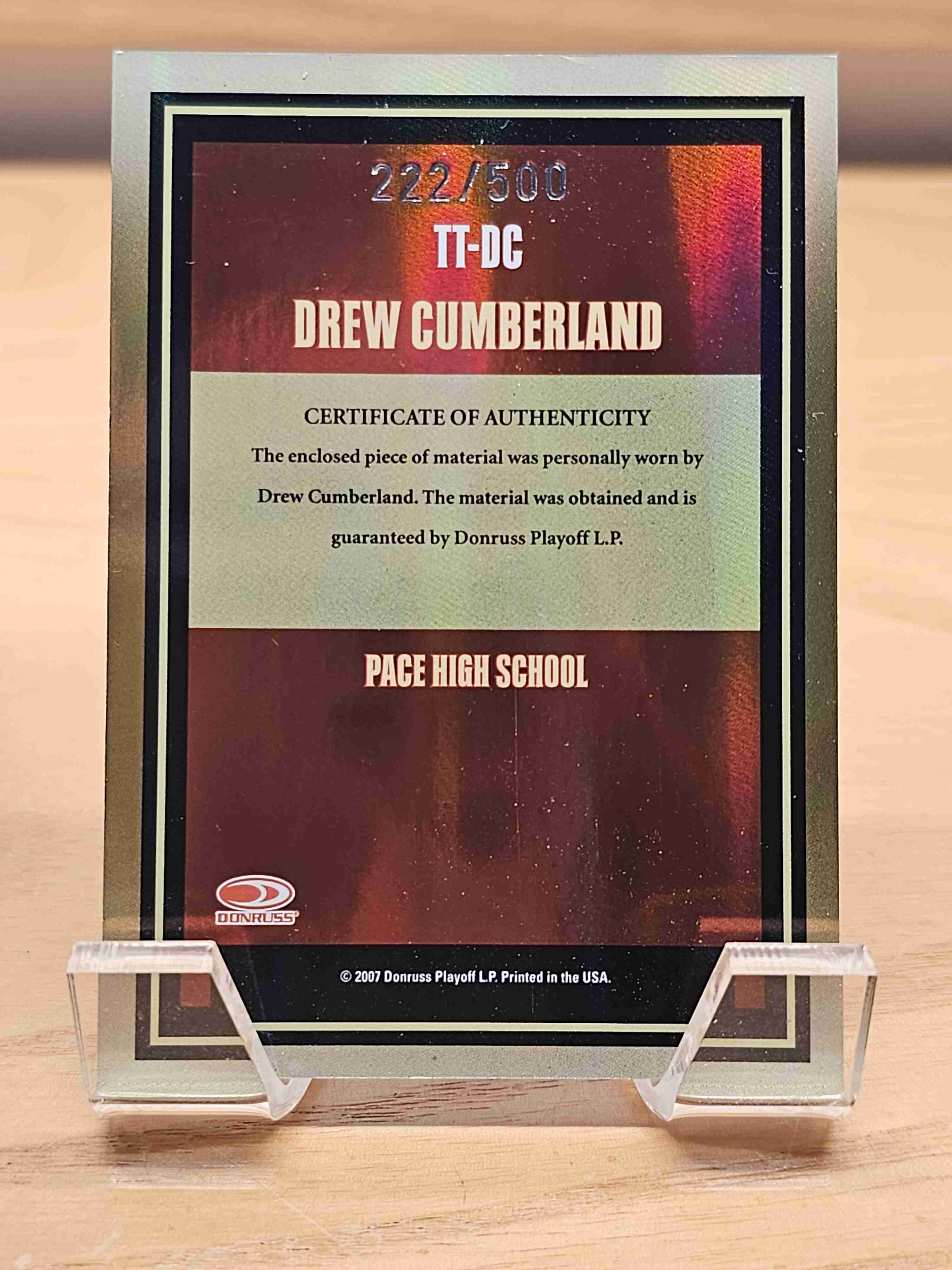2007 Elite Extra Edition Throwback Threads Drew Cumberland