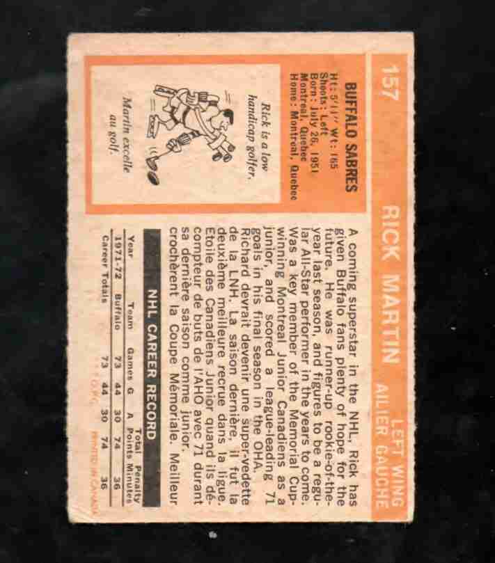 1972/73 OPC RICK MARTIN Buffalo Sabres EX/NM