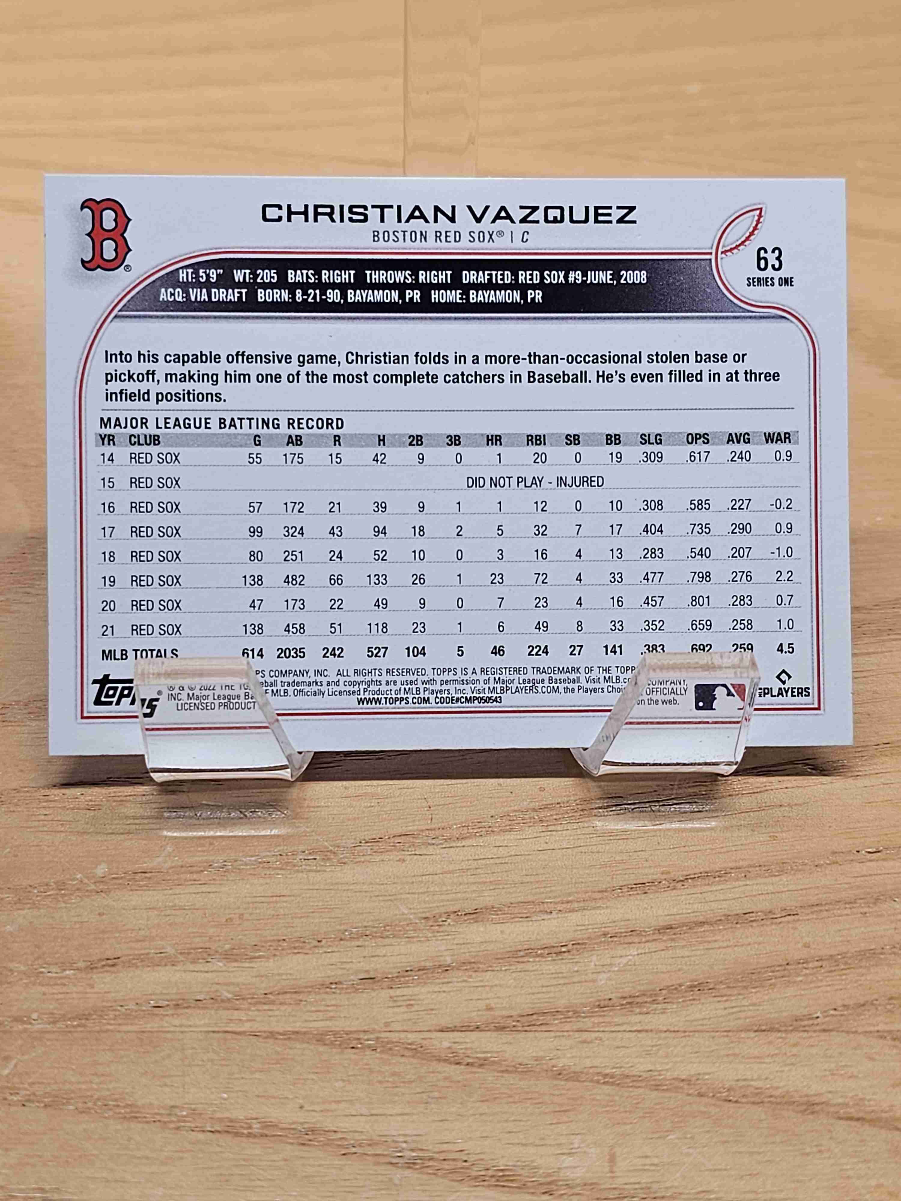 2022 Topps Series One Christian Vasquez Boston Red Sox #63