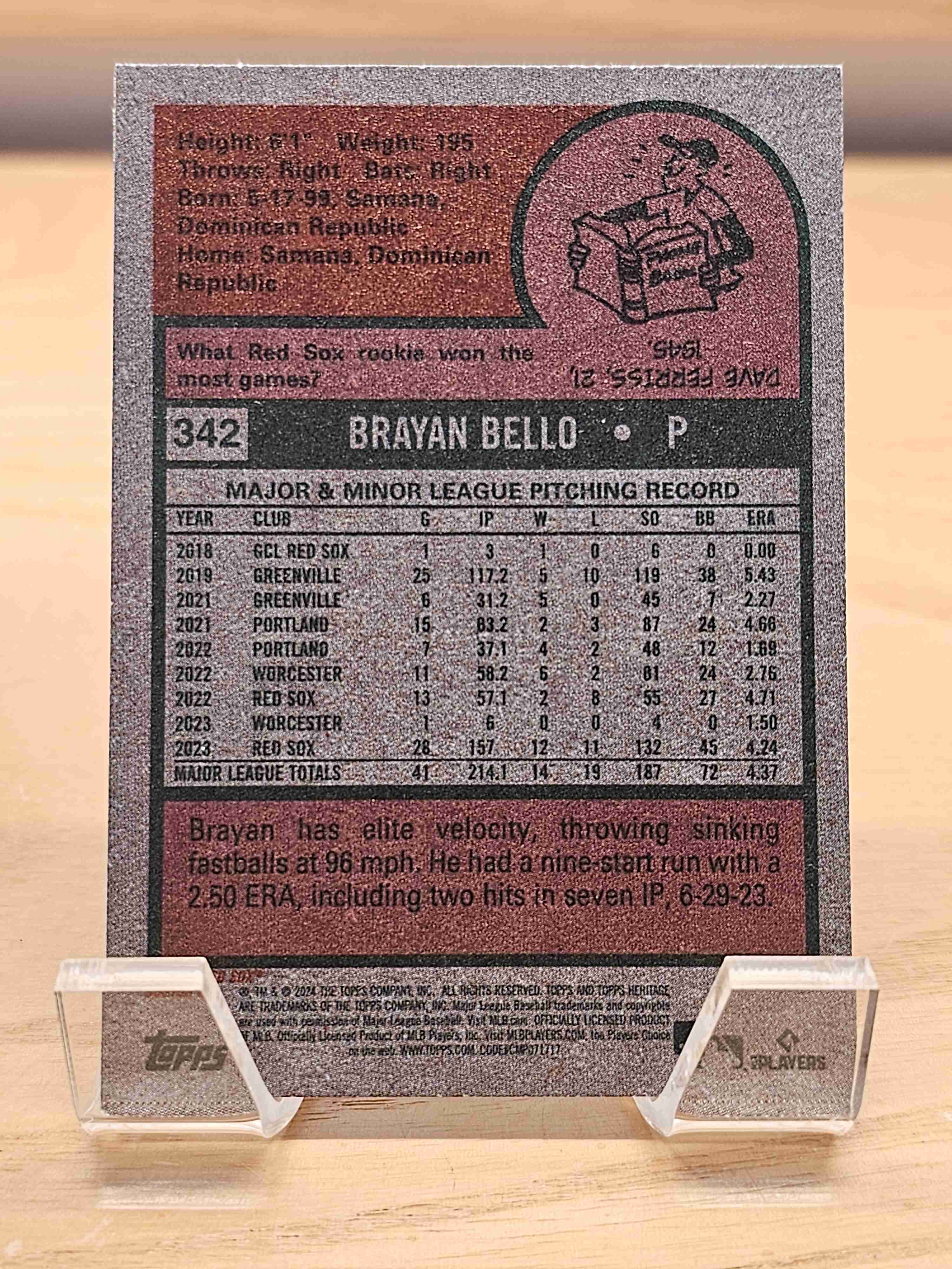 2024 Topps Heritage Baseball Brayan Bello Boston Red Sox Card #342
