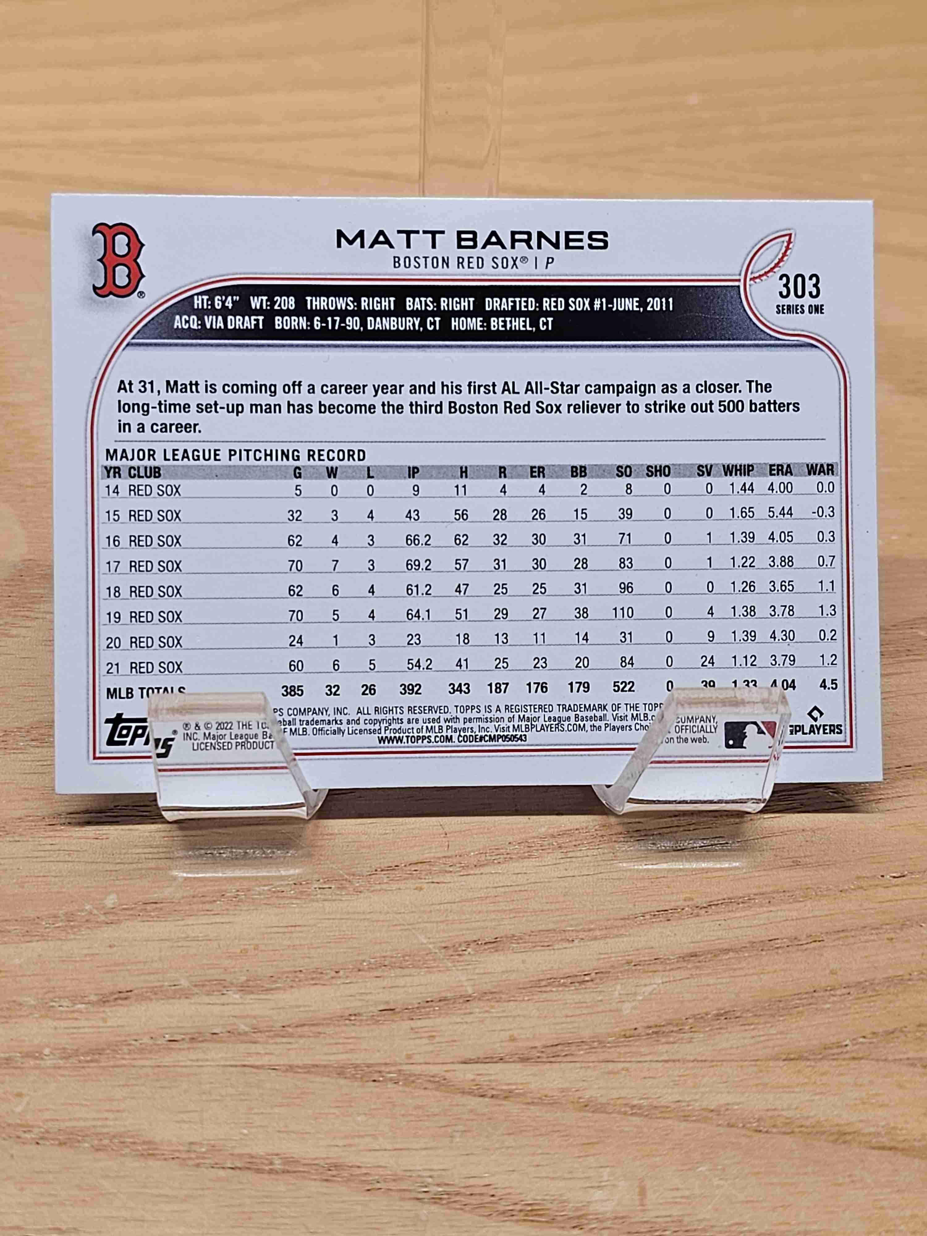 2022 Topps Series One Matt Barnes Boston Red Sox #303