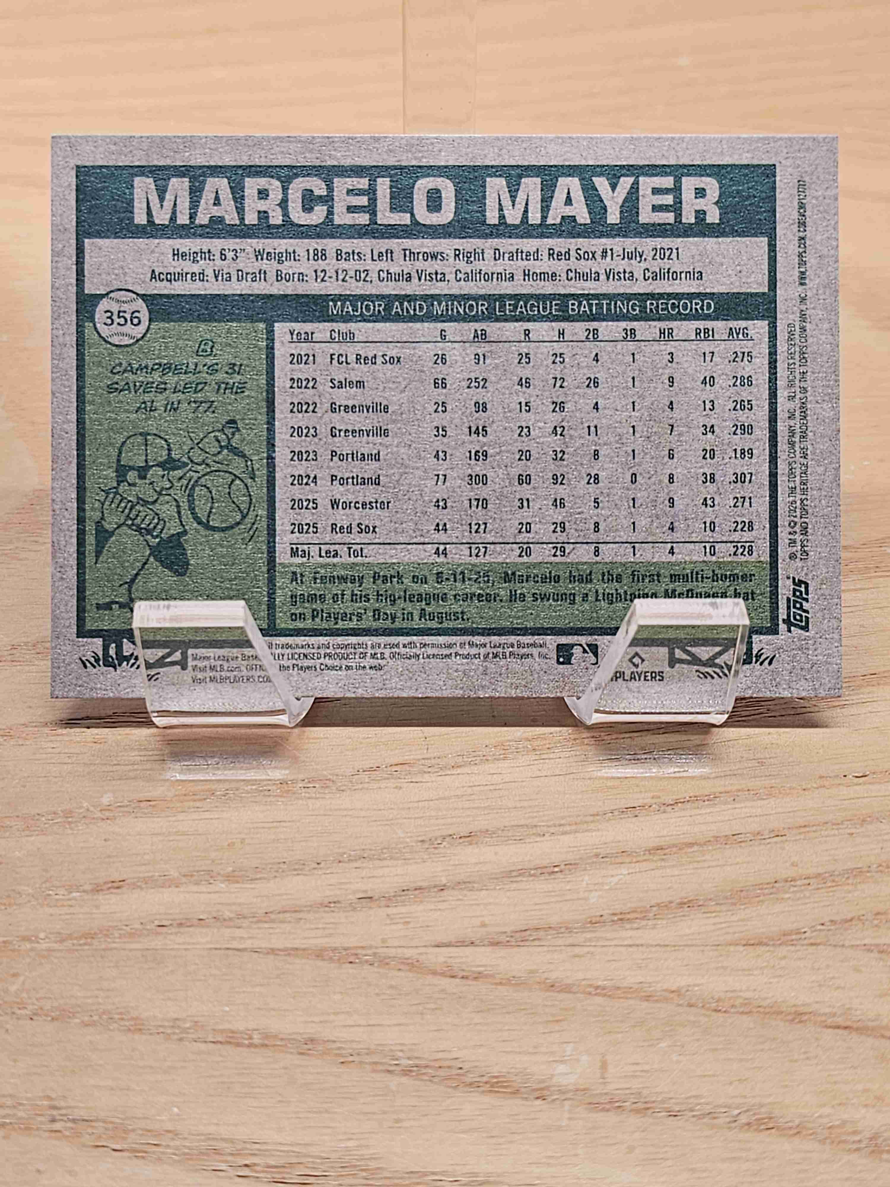 2026 Topps Heritage Baseball Marcelo Mayer Boston Red Sox Card #356