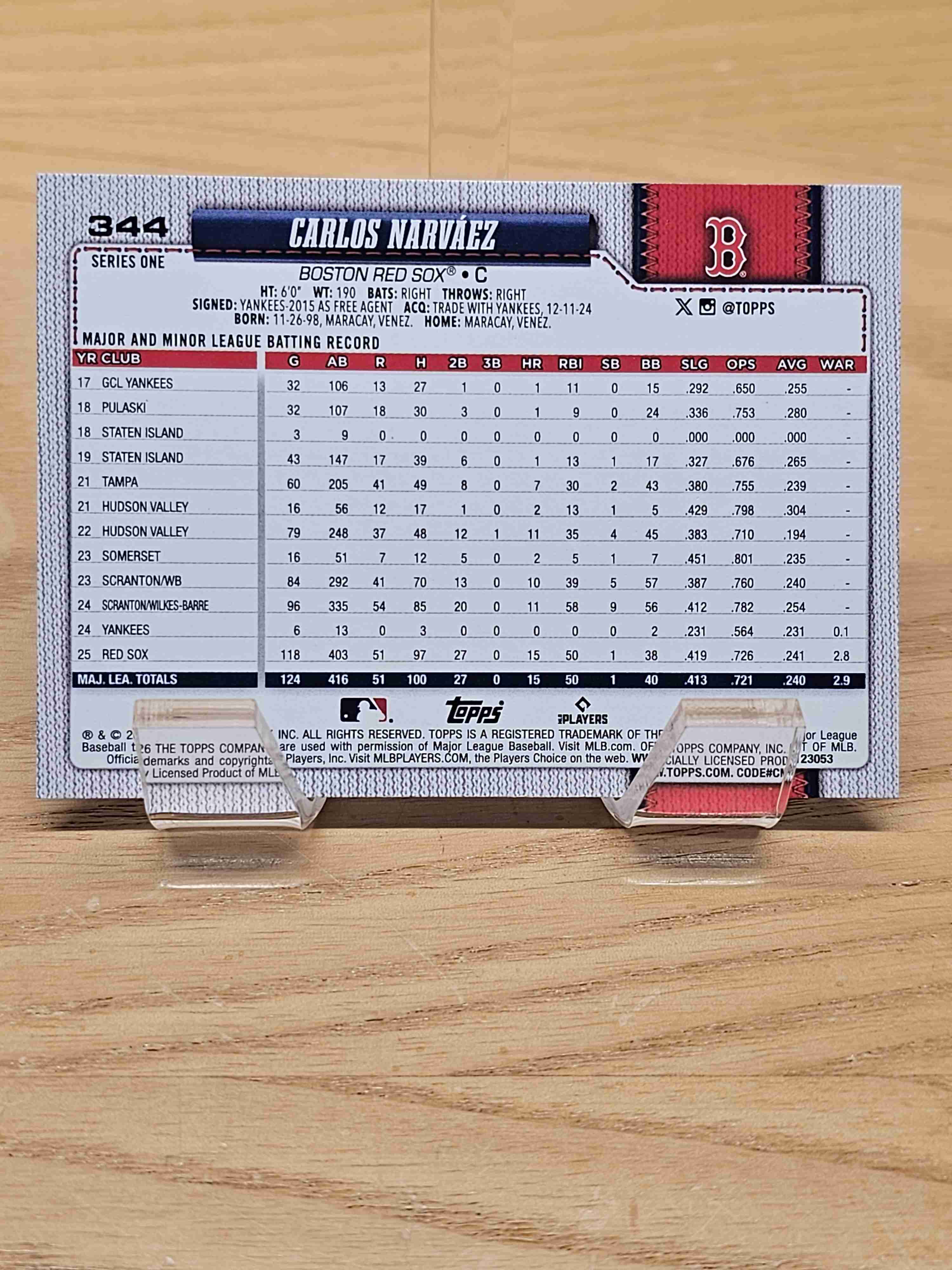 2026 Topps Series One Baseball Carlos Narvaez Boston Red Sox Card #344