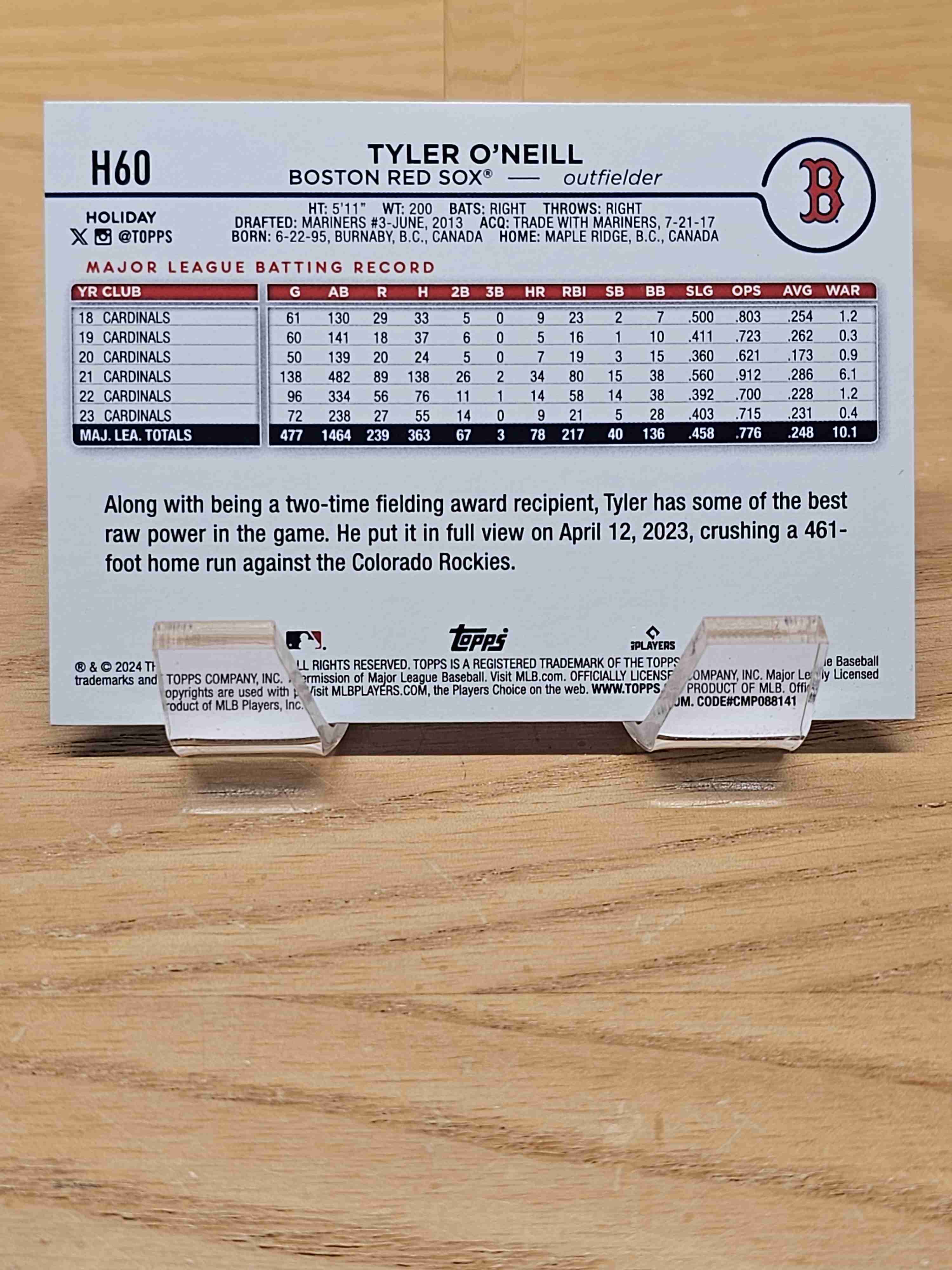 2024 Topps Holiday Baseball Tyler O'Neill Boston Red Sox Card #H60