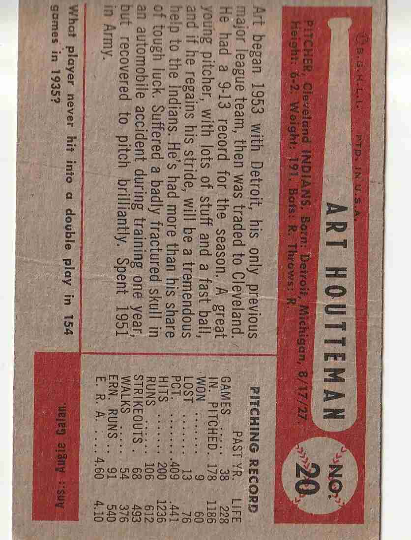 1954 Bowman #20 Art Houtteman Indians