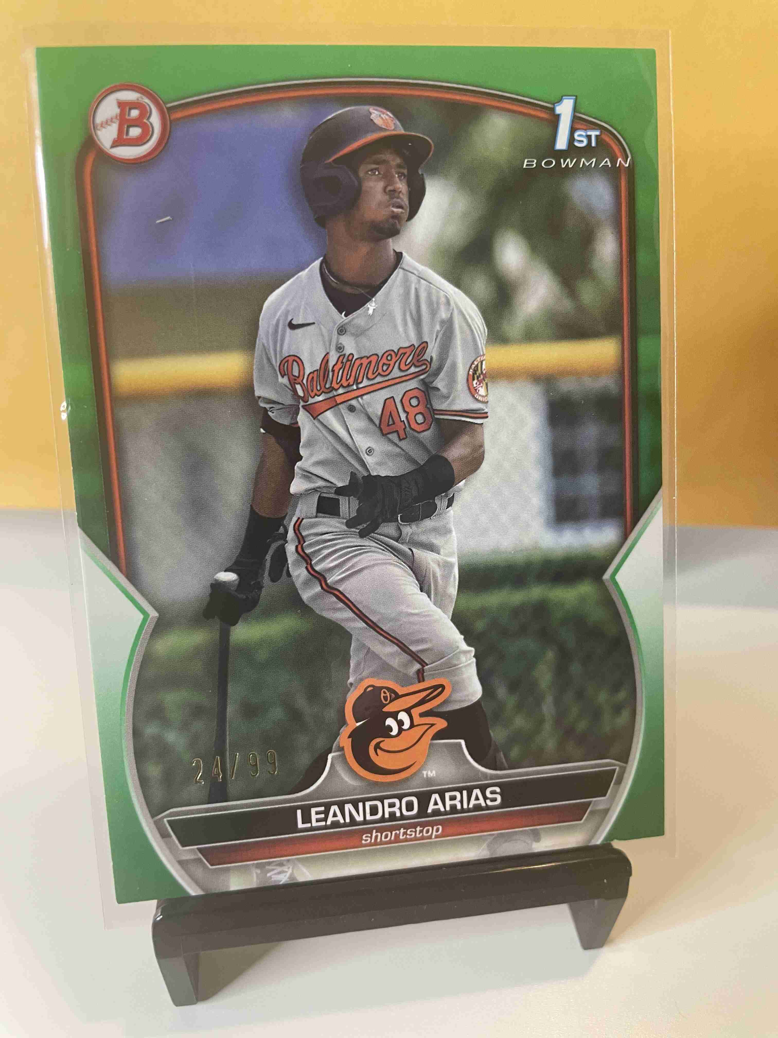 Leandro Arias 1st Bowman Green RC #'d 21/99 -- Orioles