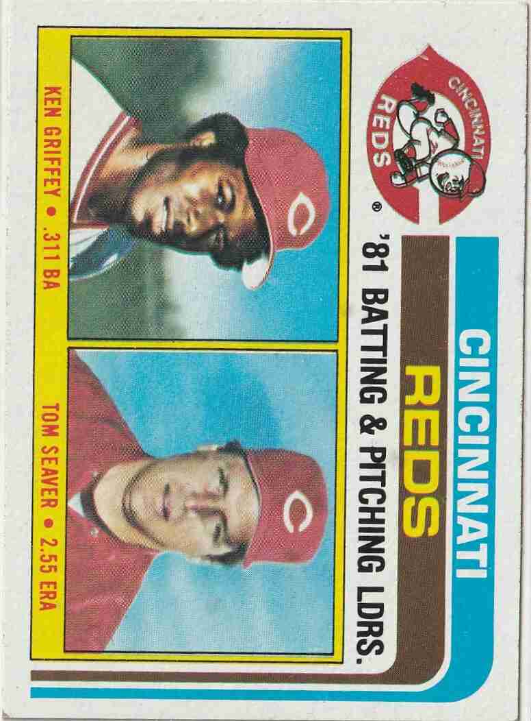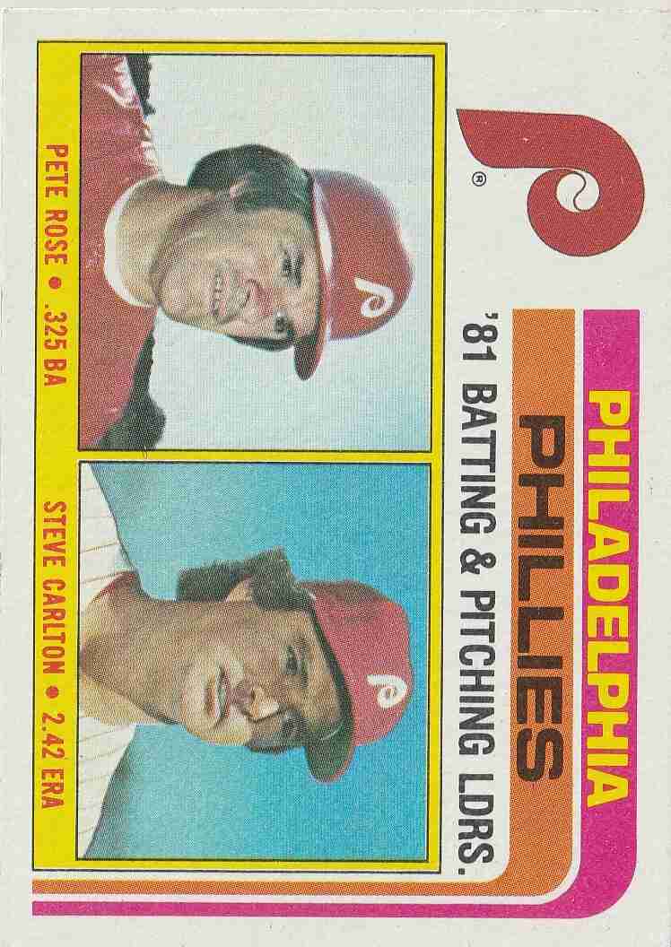 #636 1981 Phillies Batting & Pitching Leaders Rose Carlton (EX/NM/M) #756 1981 Reds Batting & Pitching Leaders Griffey Seaver (EX/NM)