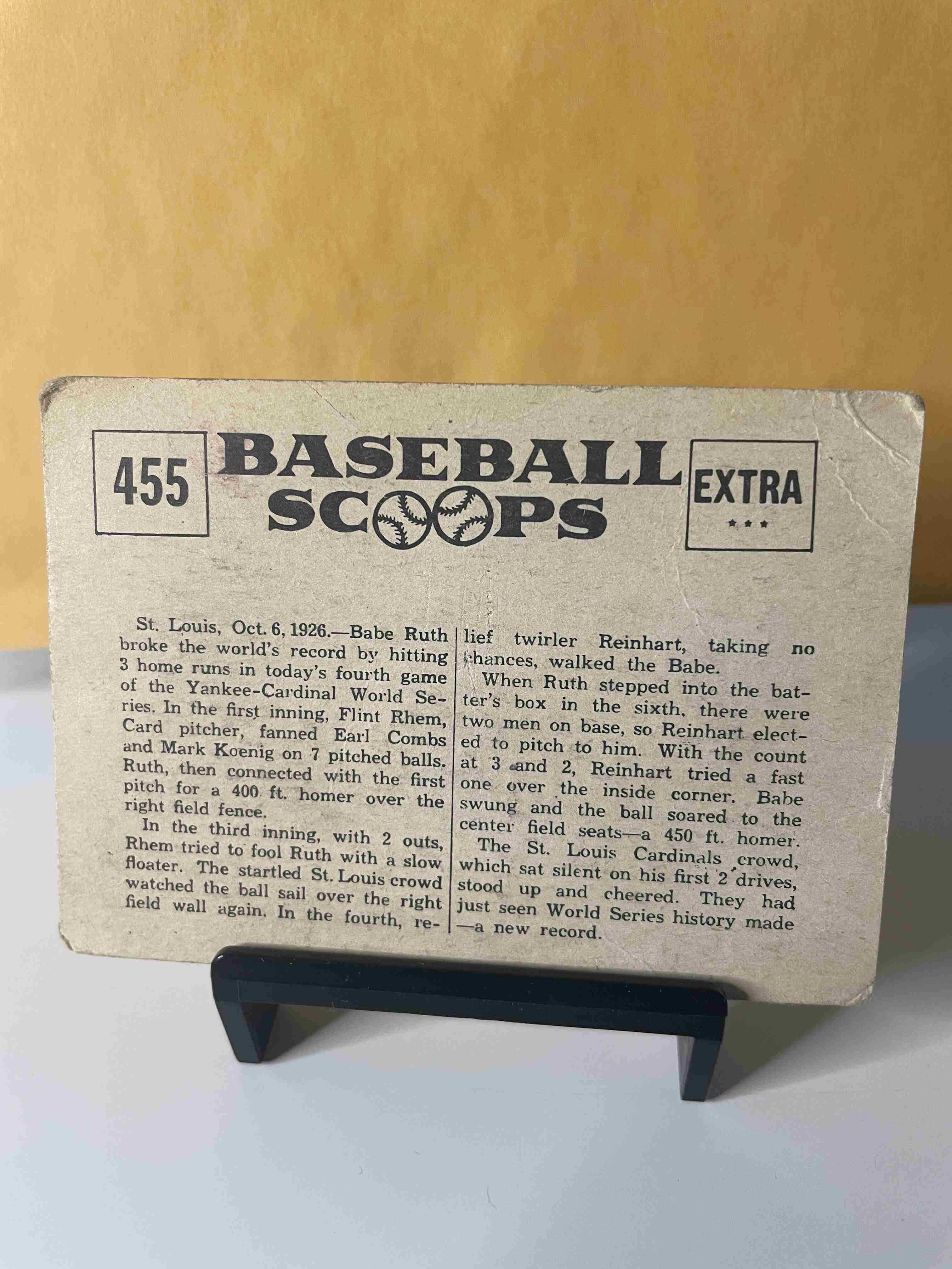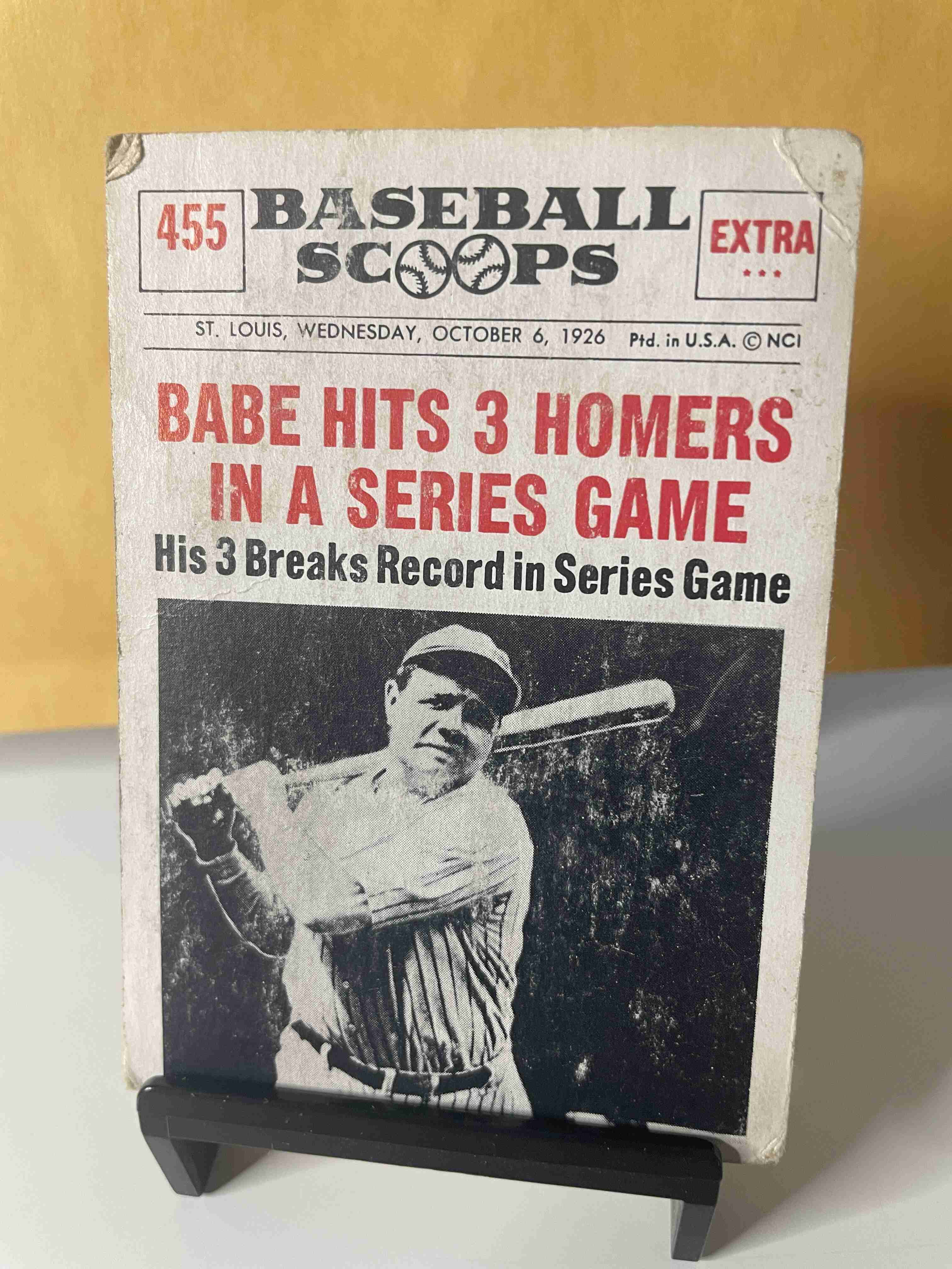 1961 Nu-Card Scoops #455 Babe Ruth . Light crease in upper right corner. Edge wear shown in picture.