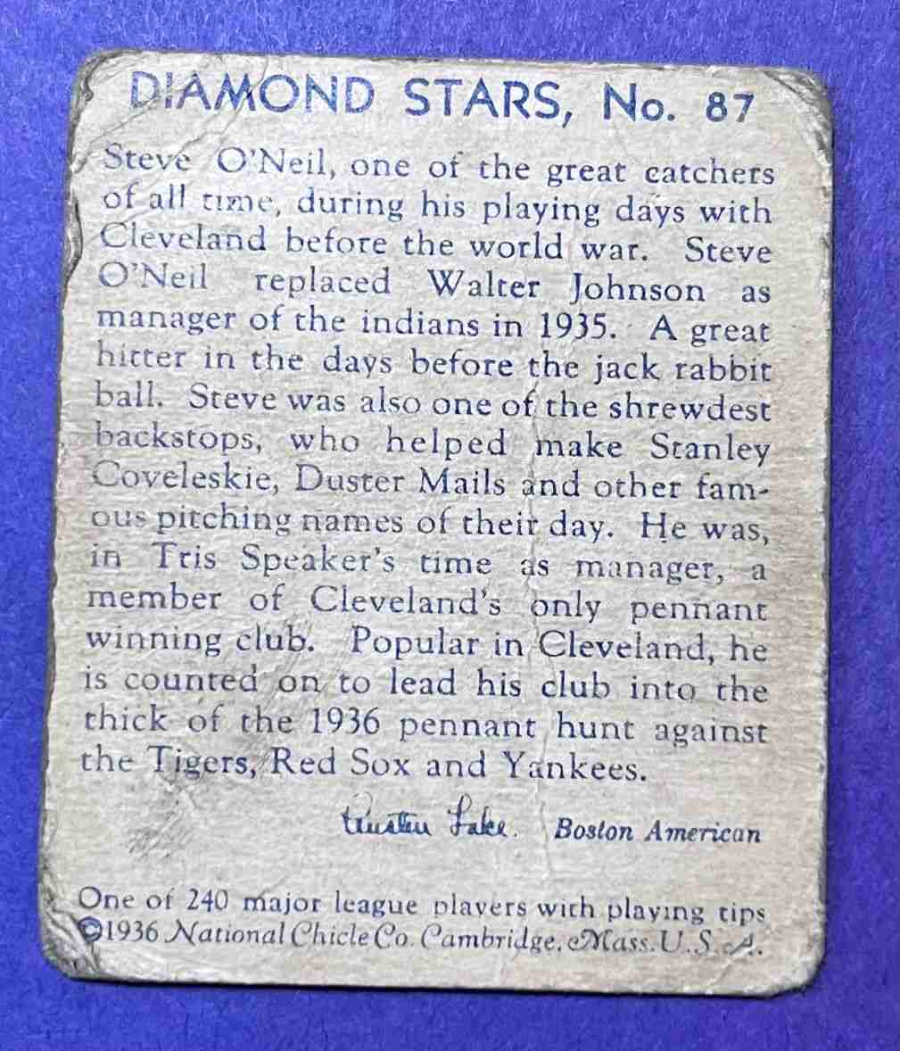 1934-36 DiamondStars STEVE O'NEIL Mid #87 +++