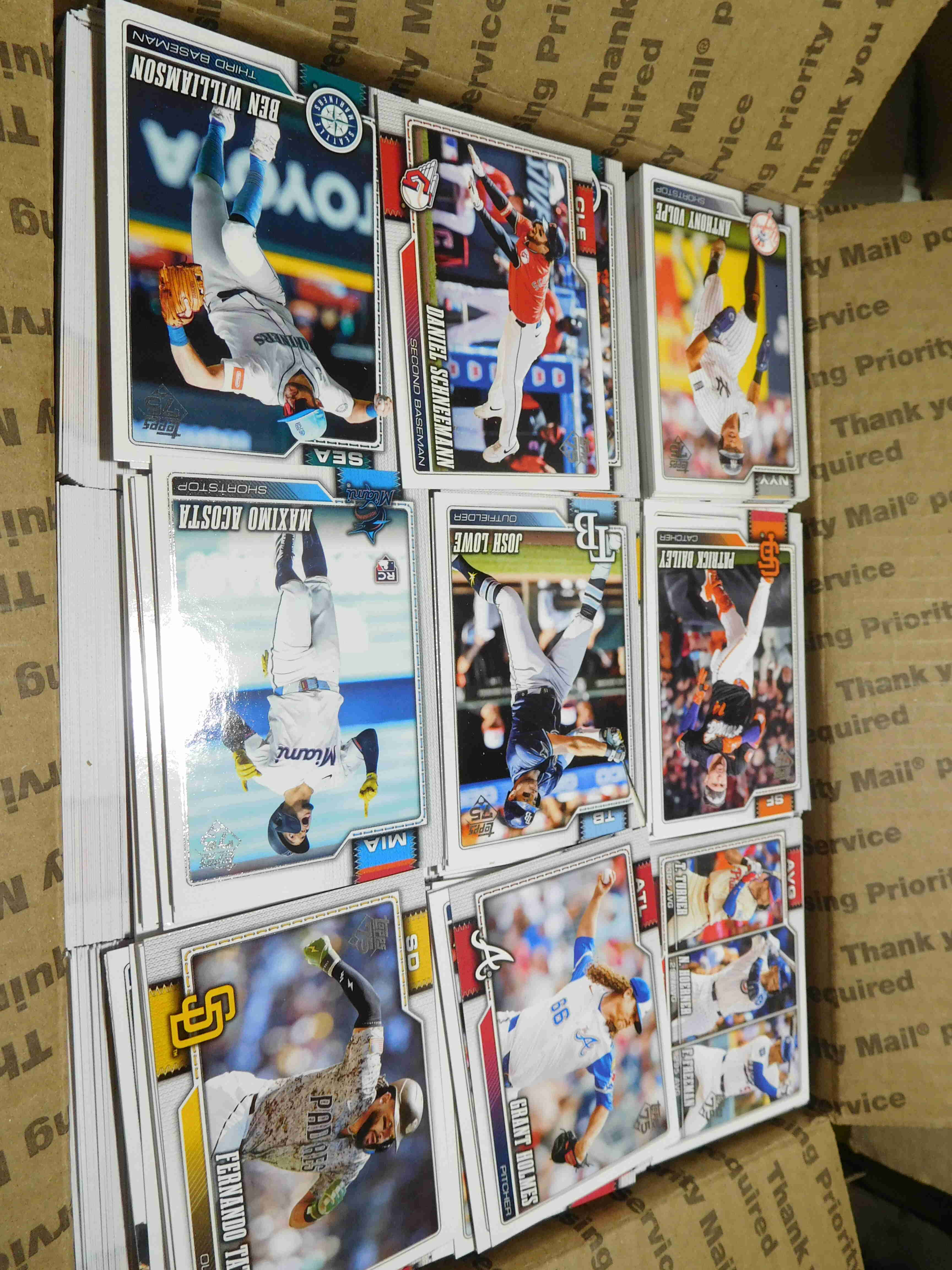 You are bidding on a bulk lot of about(2400) 2026 Topps Baseball Series One Cards. These are customer leftovers and donations and have not been checked for short prints or image variations by us. Contents appear to be base cards and a few 75th foils. We simply packed them all in a medium flat rate box absolutely full. Those of you who have purchased our bulk boxes before know what we are talking about. More bulk boxes are being worked on to help you build your Sportlots store inventory. Thanks for viewing our item and good luck.
