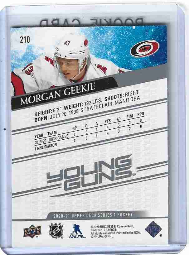 2020/21 UD 1 #210 MORGAN GEEKIE YOUNG GUNS