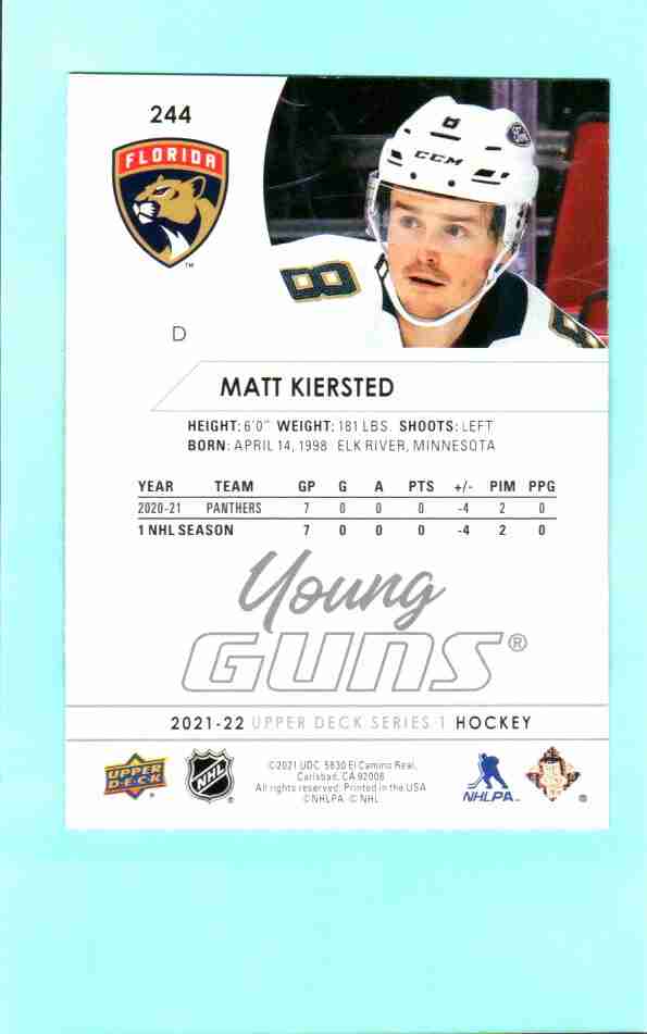 Matt Kiersted #244 Young Guns [Rookie] – 2021-22 Upper Deck Series 1 (Florida Panthers)