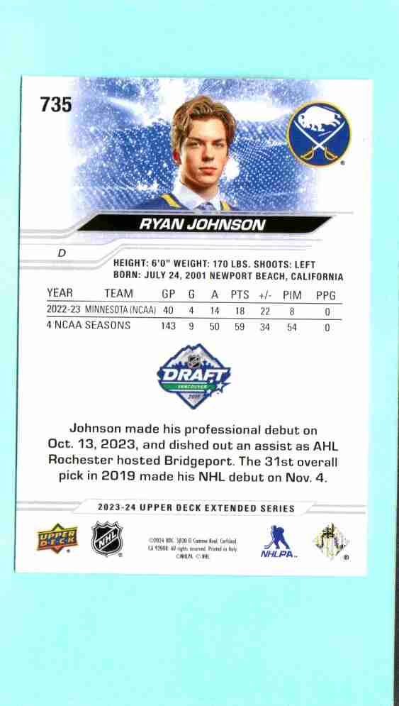 Ryan Johnson #735 Rookie – 2023-24 Upper Deck Extended
