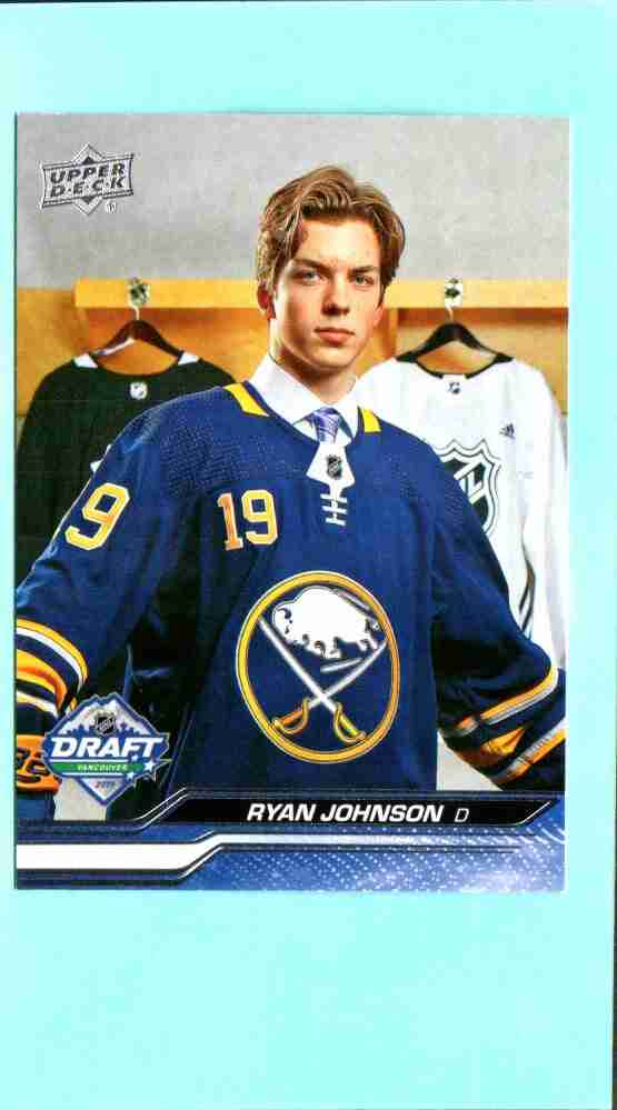 Official rookie card of Ryan Johnson featuring his NHL Draft image in a clean Extended Series design. Sharp-looking card of the Sabres defense prospect with strong collector appeal.