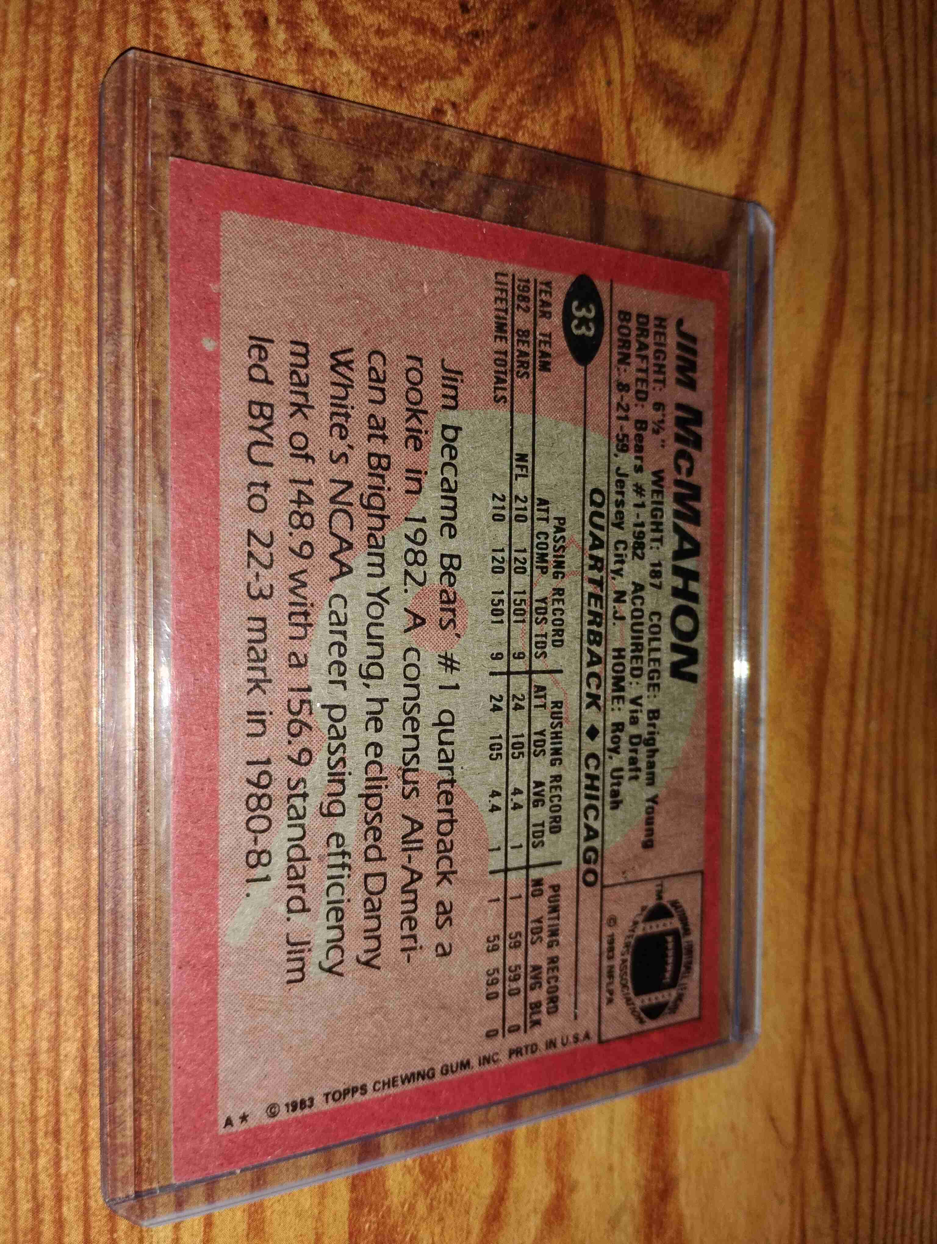 JIM MCMAHON 1983 TOPPS ROOKIE CARD #33