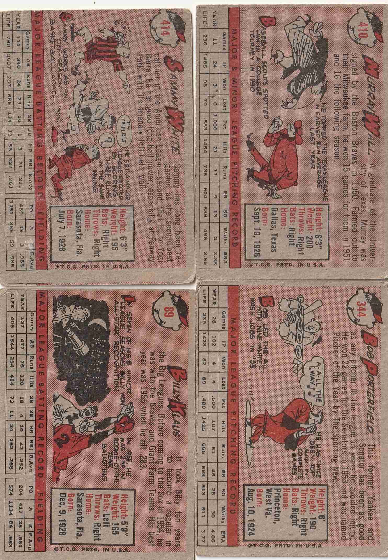 #89 Billy Klaus (EX) #344 Bob Porterfield (Good) #410 Murray Wall (VG/VG+) #414 Sammy White (Good)