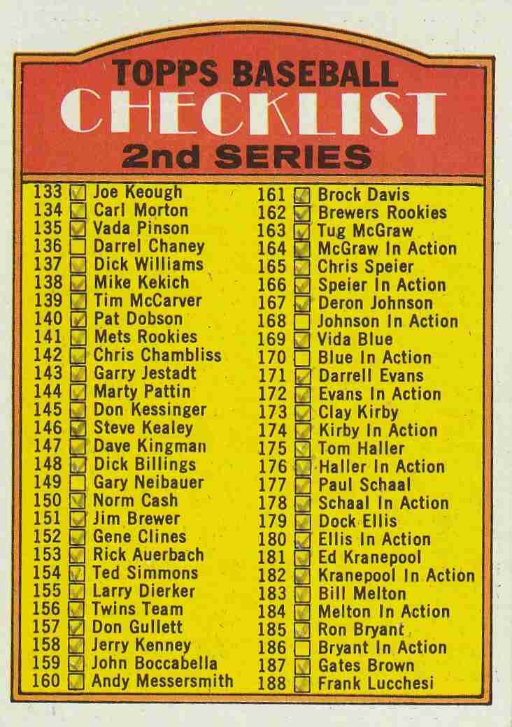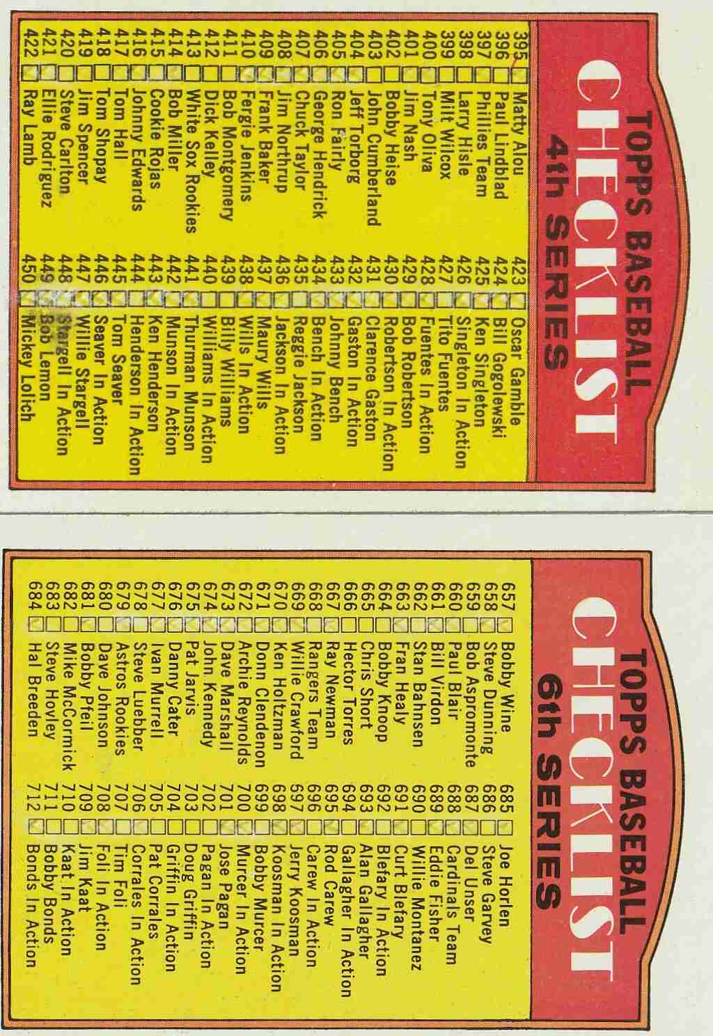 5-1972 Topps Checklists #'s 4 4 103 378 604