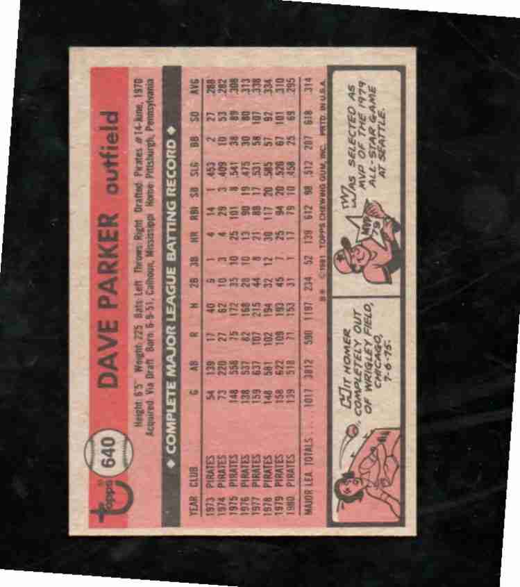 1981 Topps # 640 DAVE PARKER Pitt. Pirates NM/M
