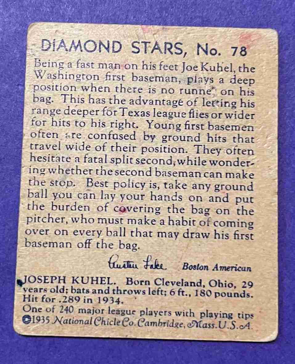 1934-36 DiamondStars JOE KUHEL #78 +++