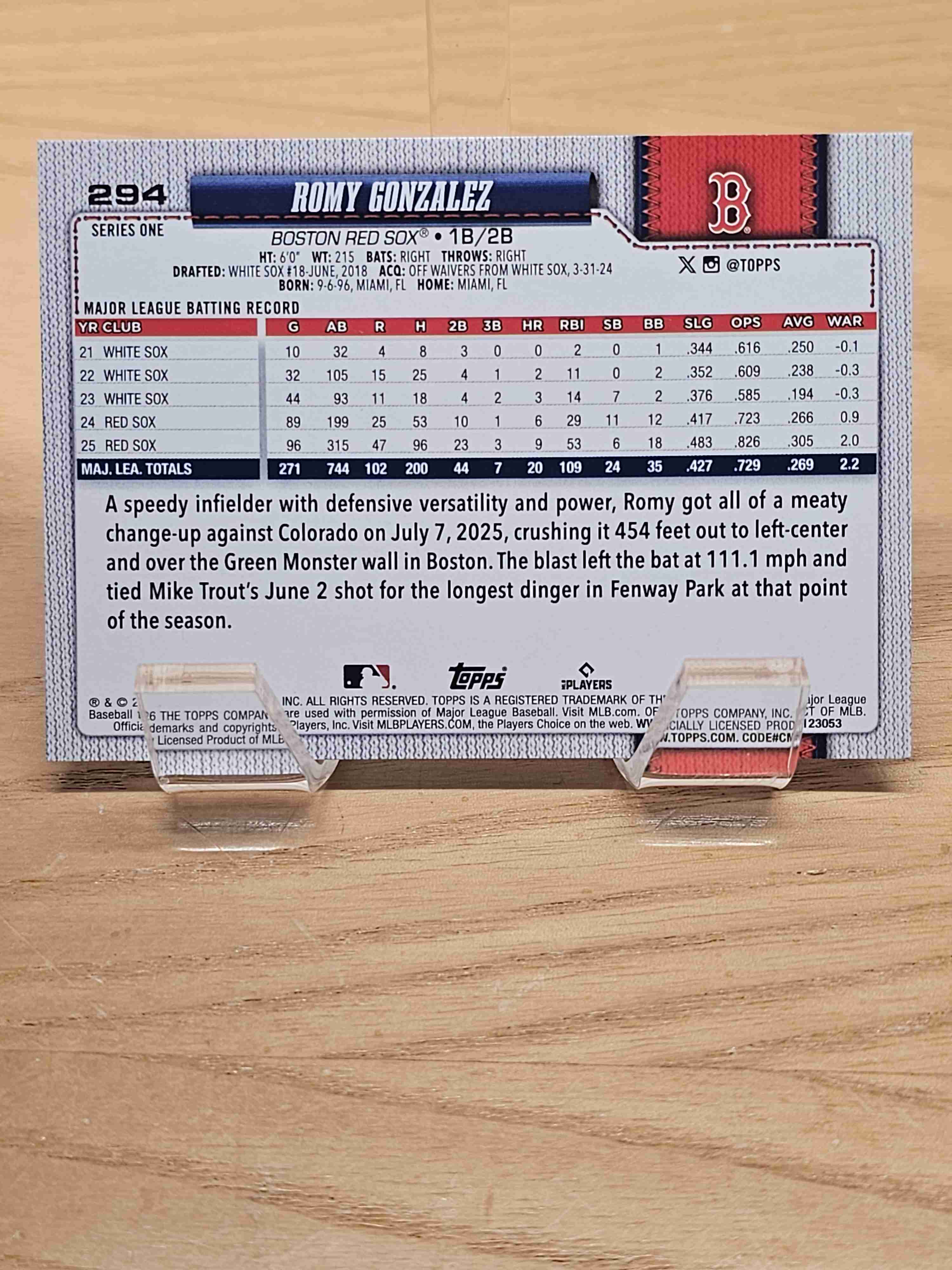 2026 Topps Series One Romy Gonzalez Boston Red Sox #294
