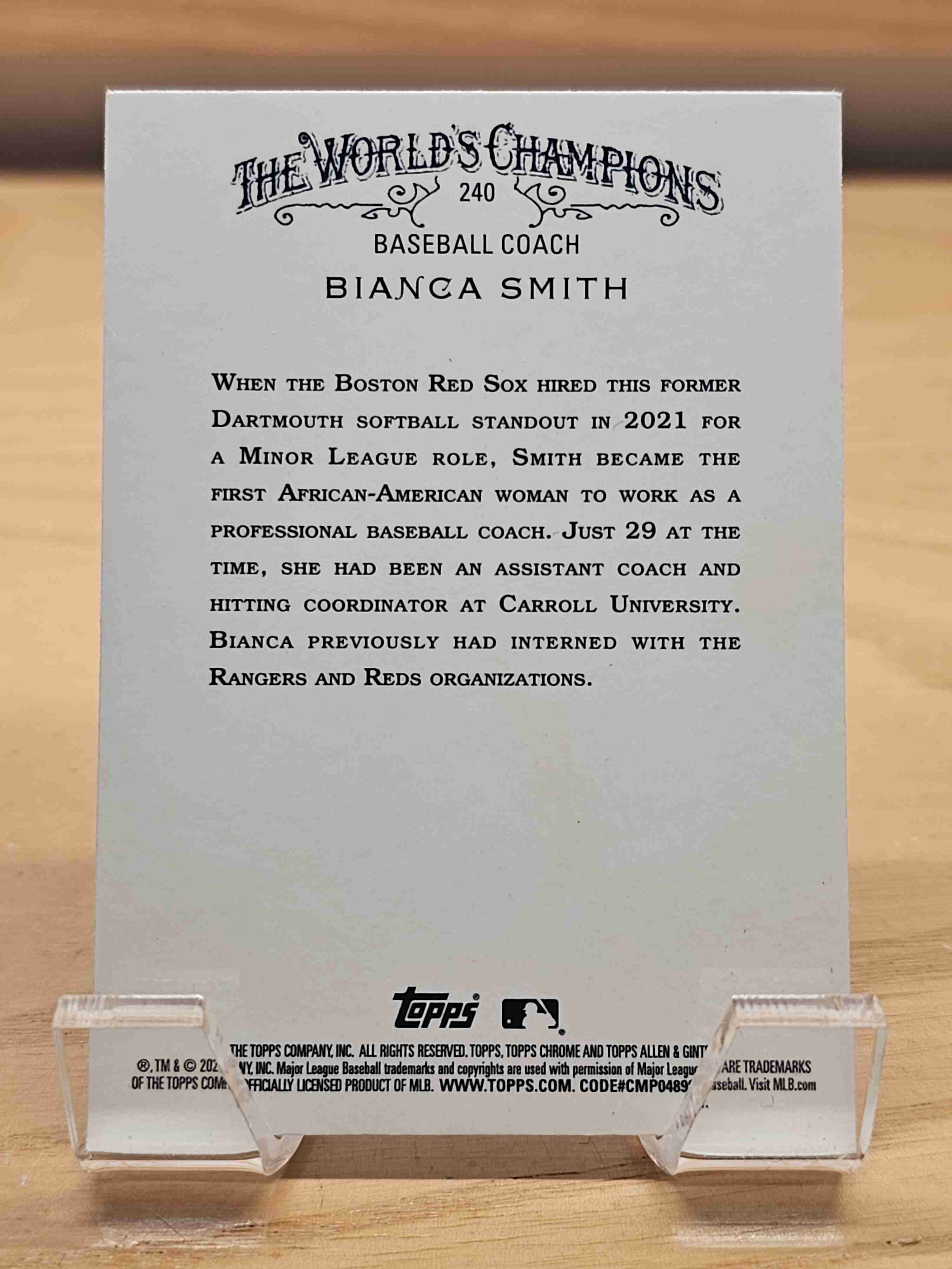 2021 Topps Chrome Allen & Ginter Baseball Baseball Coach Bianca Smith Boston Red Sox Card #240