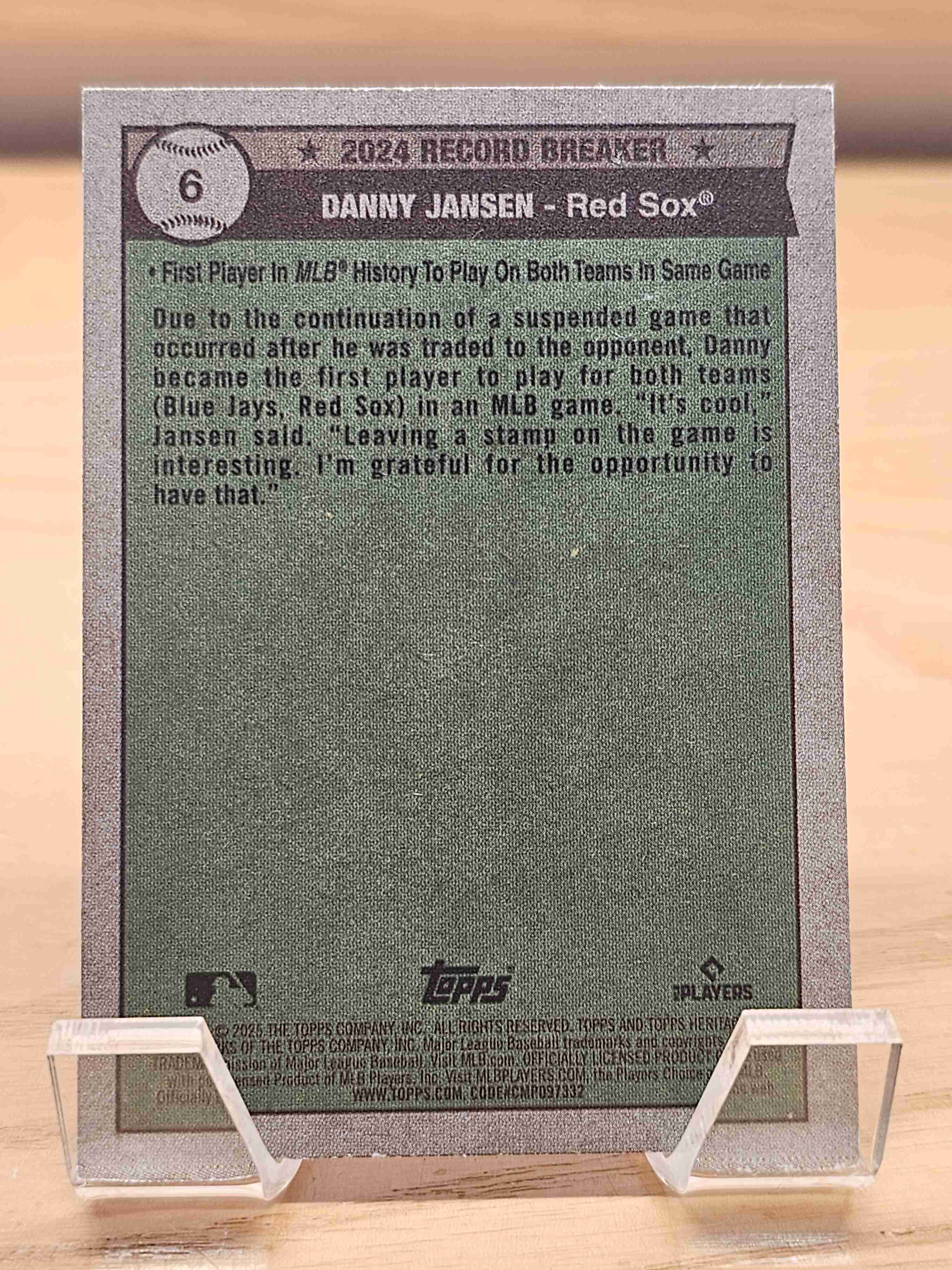 2025 Heritage 2024 Record Breaker Danny Jansen Red Sox #6
