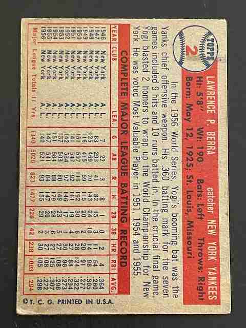 1957 Topps Yogi Berra #2 - Grade: 5 (AI)