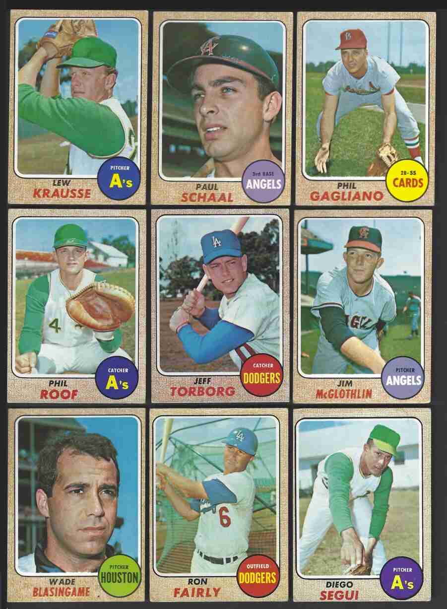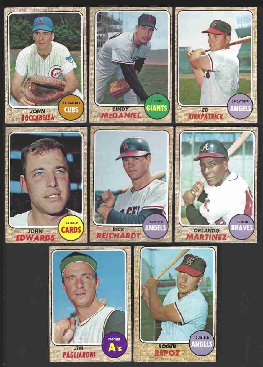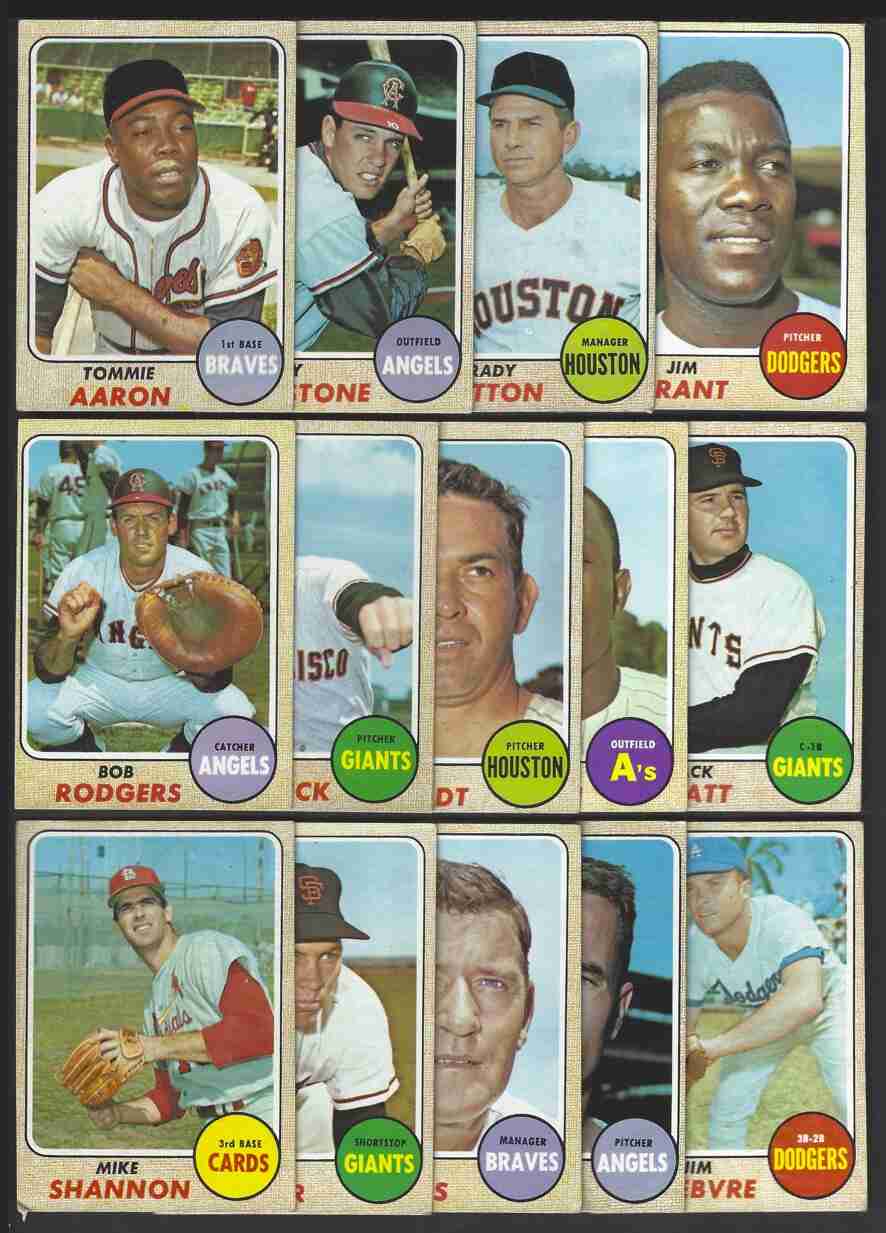 1968 Topps Baseball Lot (31) -Series 5,6,7. 5th Series (14) -#389,392,394, 398,400,403,404,419,433,436,439,445,453,457. 6th Series (9) -#458,474,479, 484,492,493,507,510,517. 7th Series (8) -#542,545,552,558,570,578,586,587. Nice lot of scarce High Series Baseball cards. Cards are in the mid to higher-grade range. Cards have minor flaws. Nice shape for this condition-sensitive set. Please review scans carefully for condition.