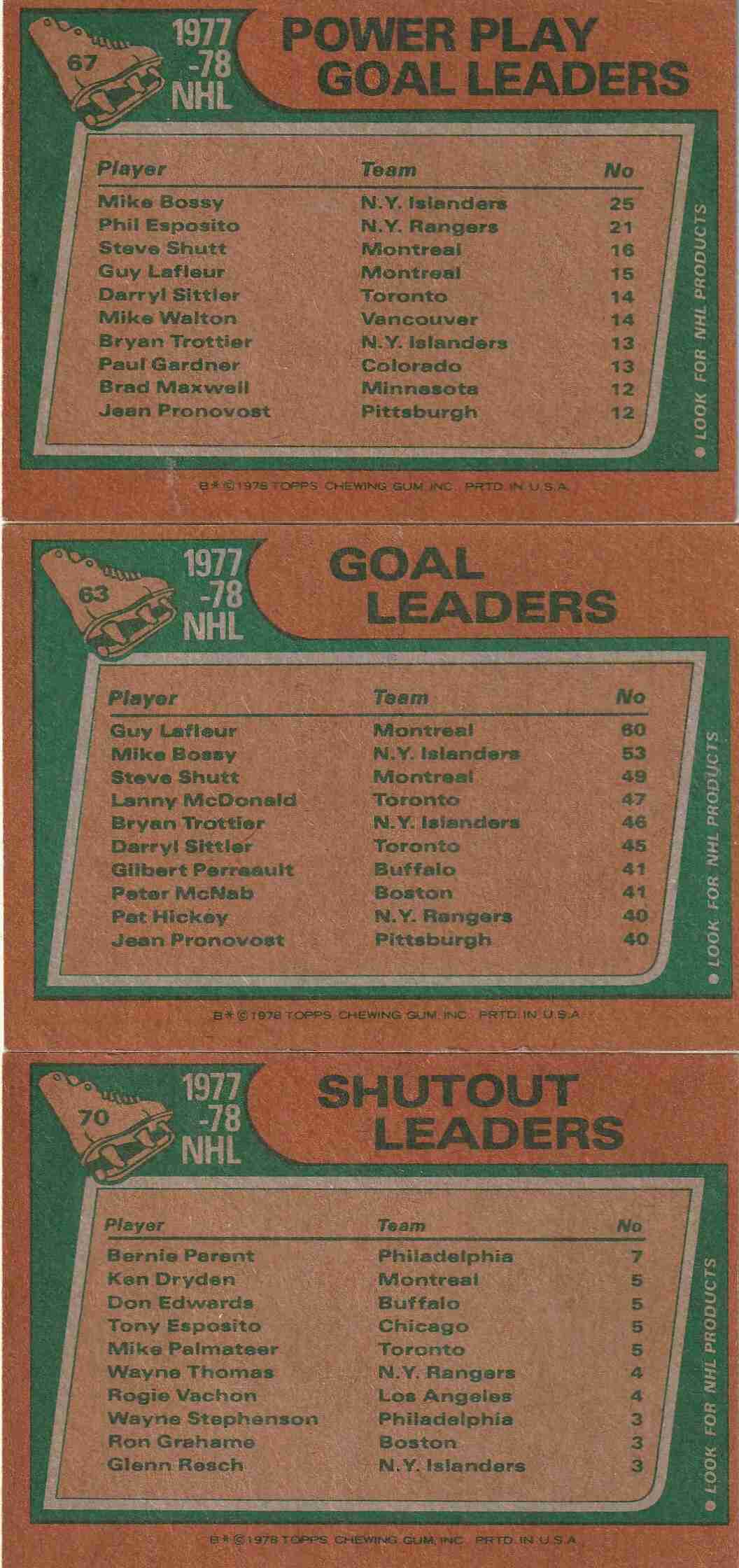 3-Topps 1977-78 NHL Leader Cards #'s 63 67 70
