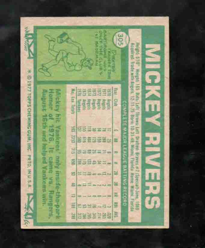 1977 Topps # 305 MICKEY RIVERS NY Yankees NM