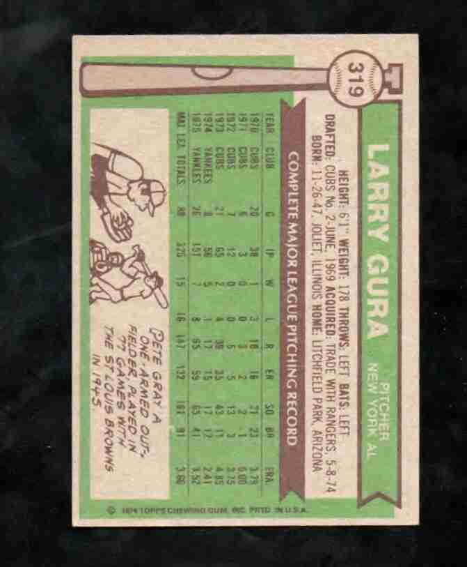 1976 Topps # 319 LARRY GURA NY Yankees NM