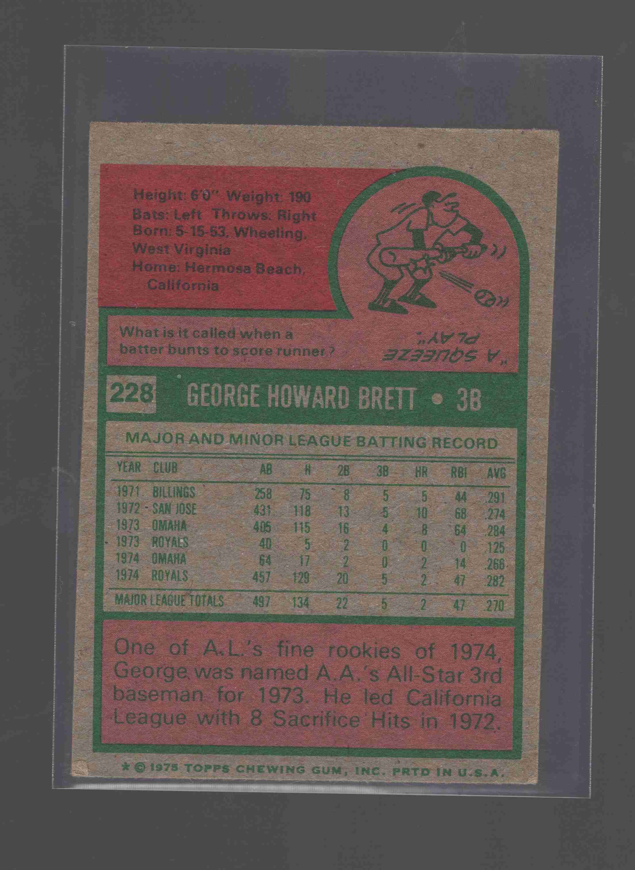 George Brett 1975 Topps Mini RC #228 - No Creases