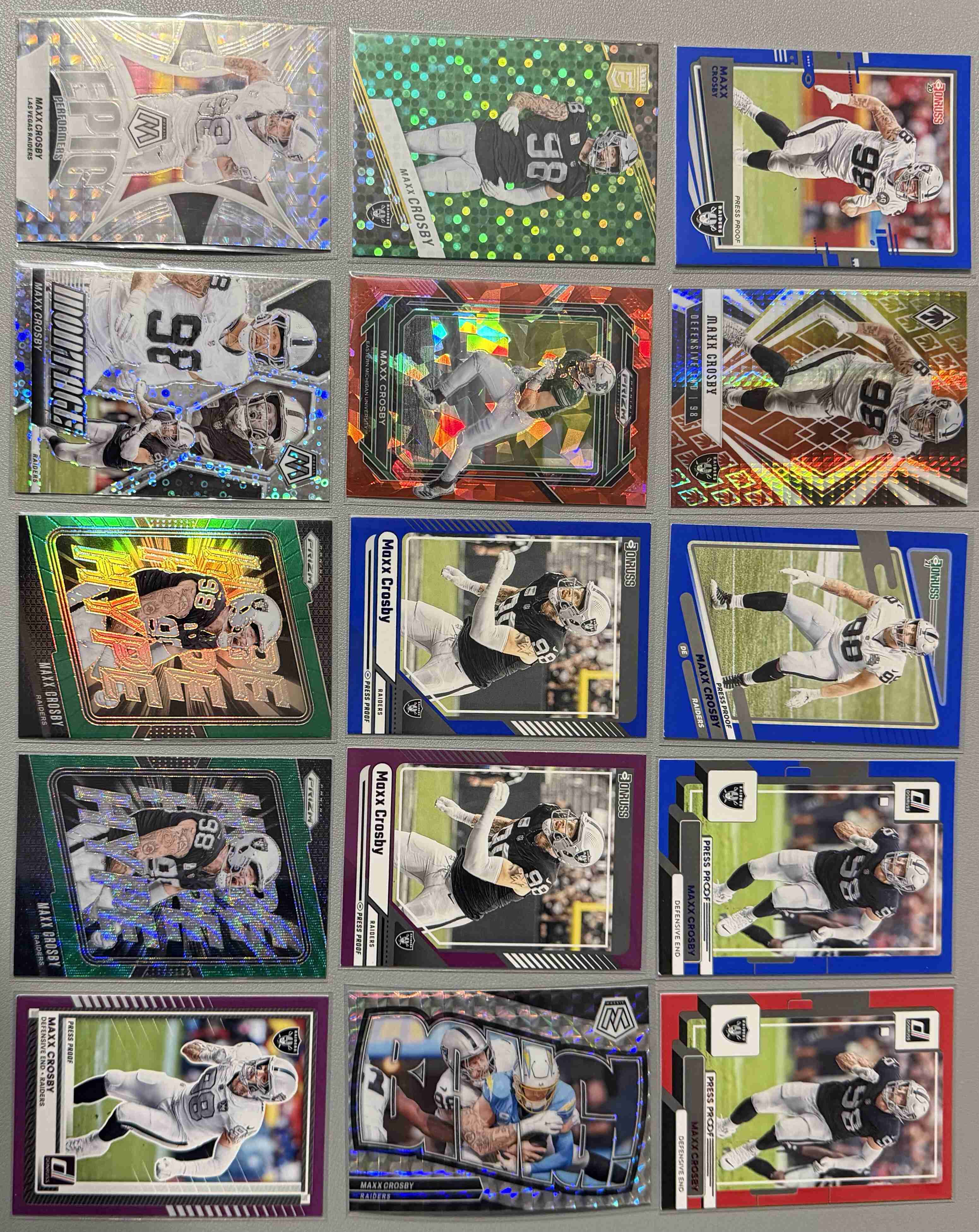 MAXX CROSBY - Lot of (15) Color Parallels w/ no dupes!