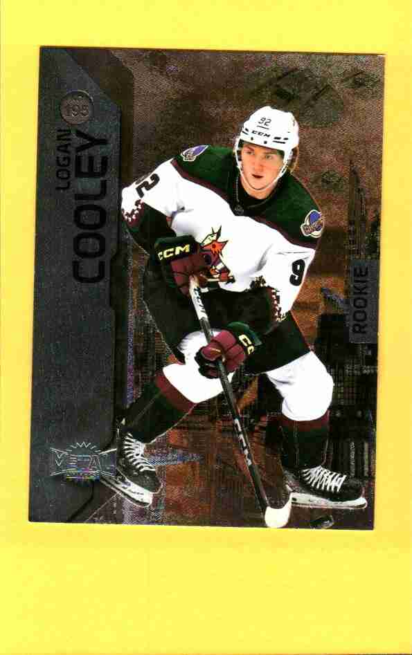 Featuring rising NHL star Logan Cooley of the Arizona Coyotes, this Metal Universe rookie card has a bold, futuristic design with strong visual appeal and crisp detail.