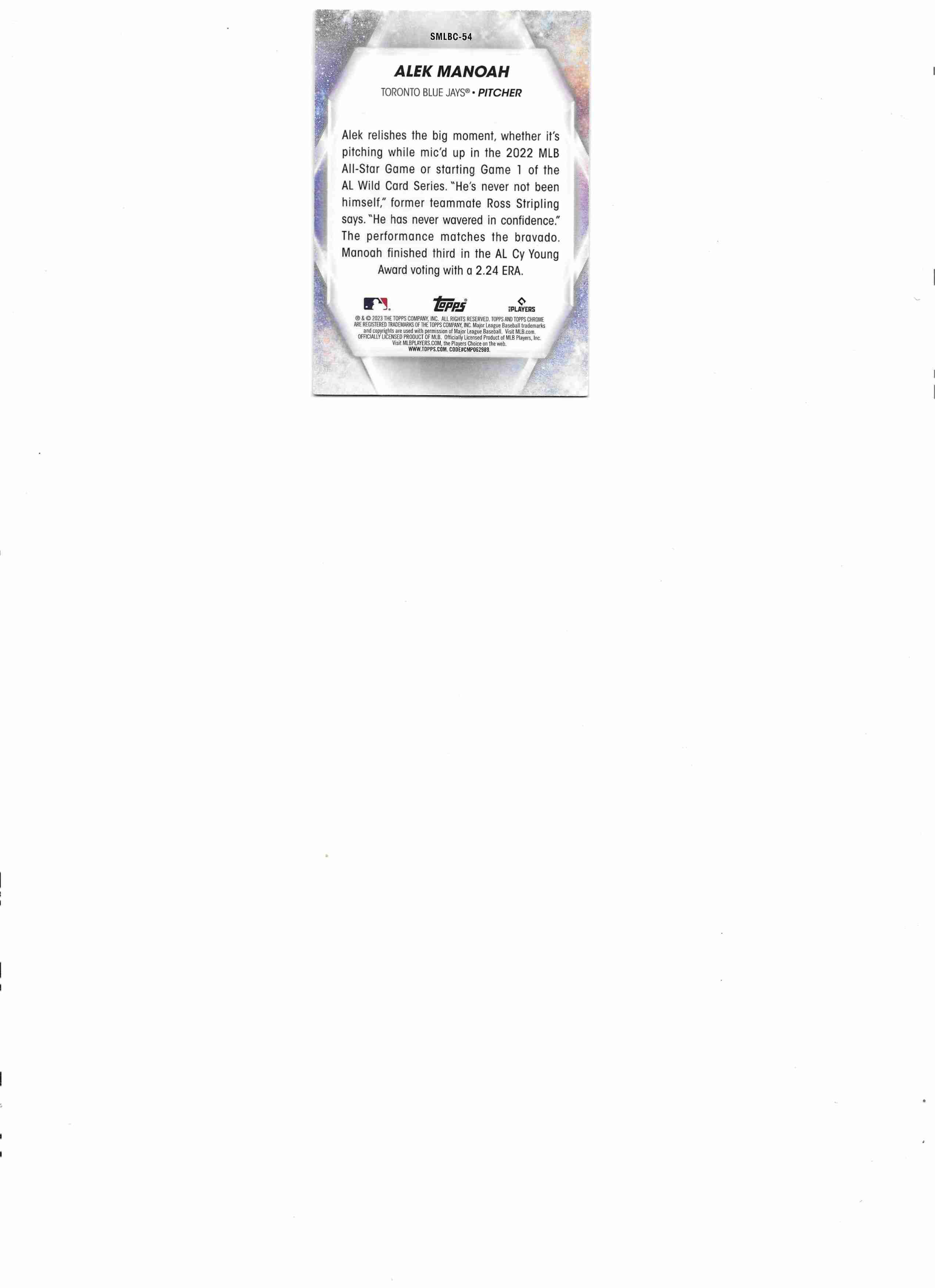 2023 topps chrome Alek Manoah Blue Jays