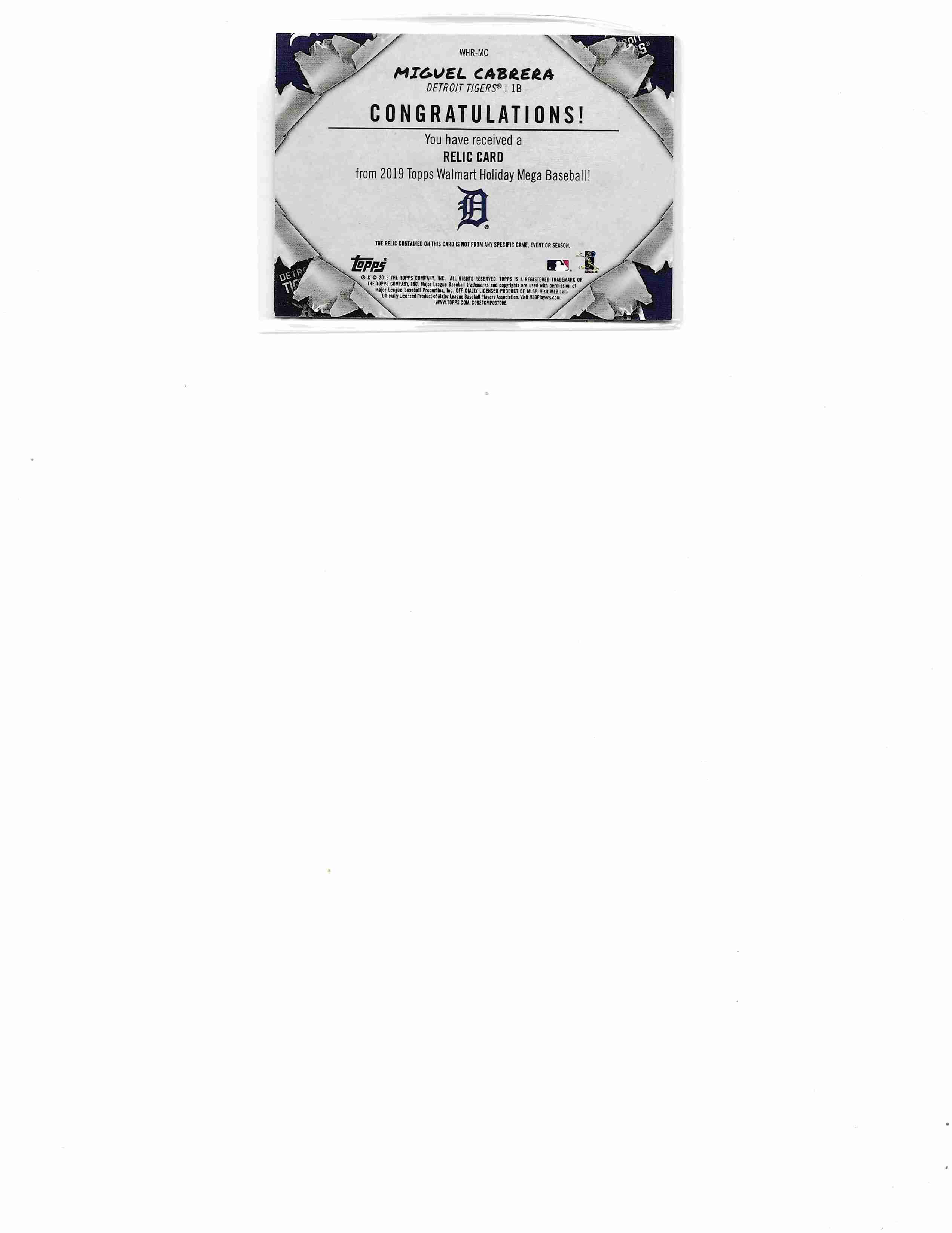 2018 TOPPS MIGUEL CABRERA RELIC CARD JERSEY CARD #WHR-MC. CARD IN EXCELLENT CONDITION.