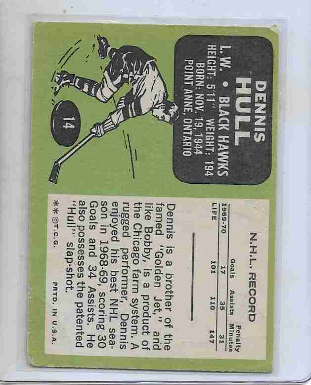 1969-70 Topps #14 ~ Dennis Hull Chicago Black Hawks