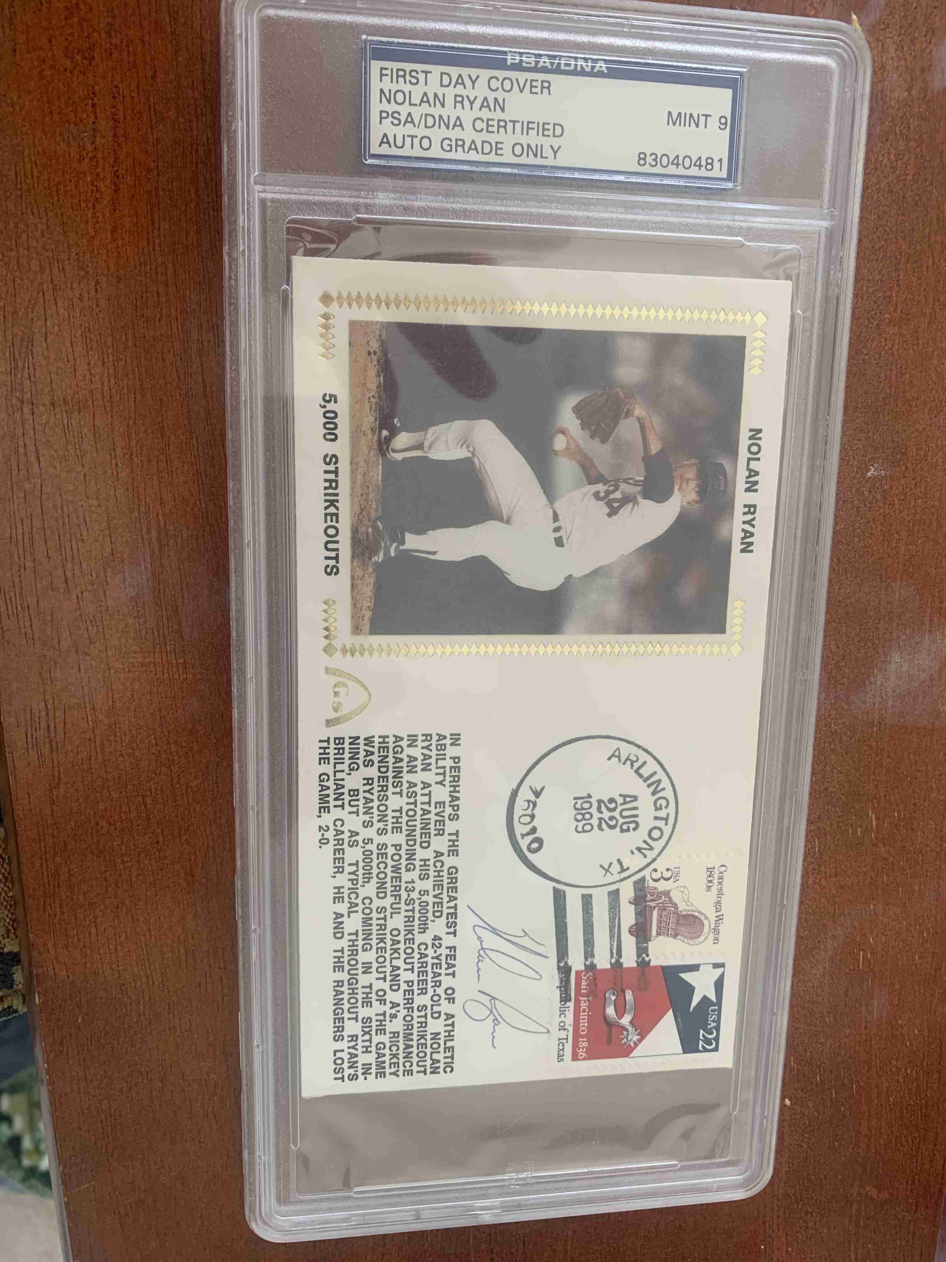 1989 First Day Issue Nolan Ryan auto PSA 9 🔥 Ranger