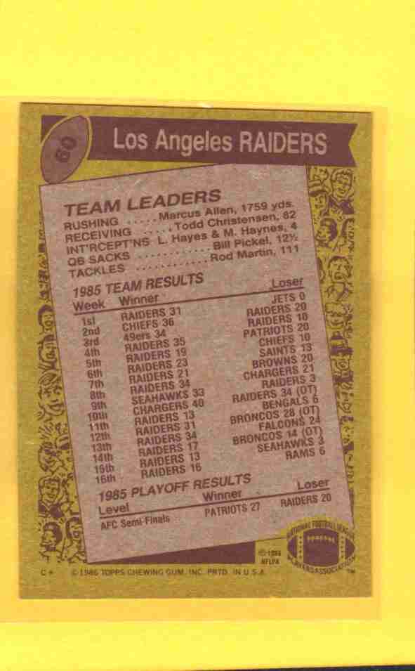Raiders Team [Marcus Allen] #60 1986 Topps