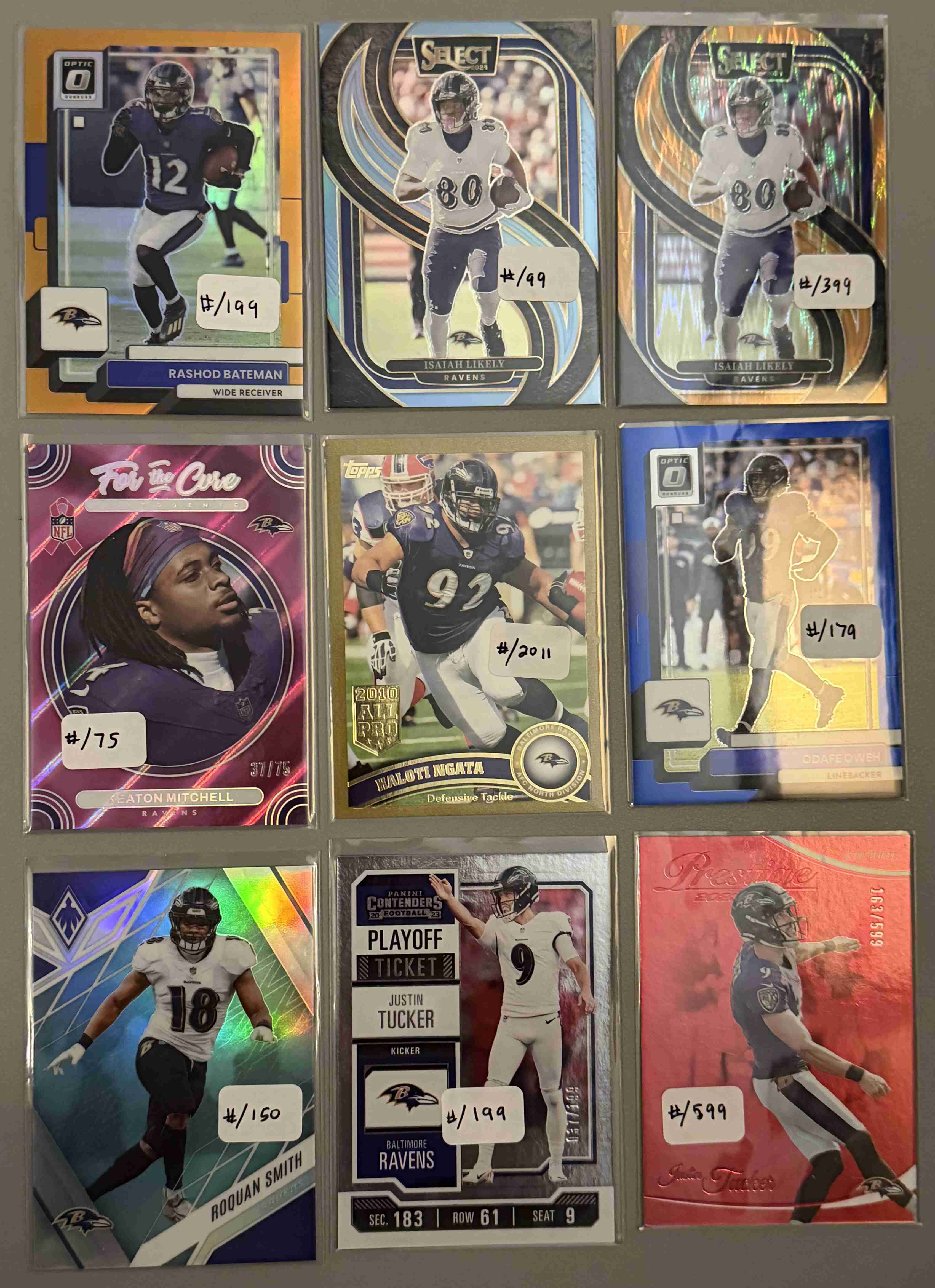 BALTIMORE RAVENS - Lot of (9) Serial Numbered Cards