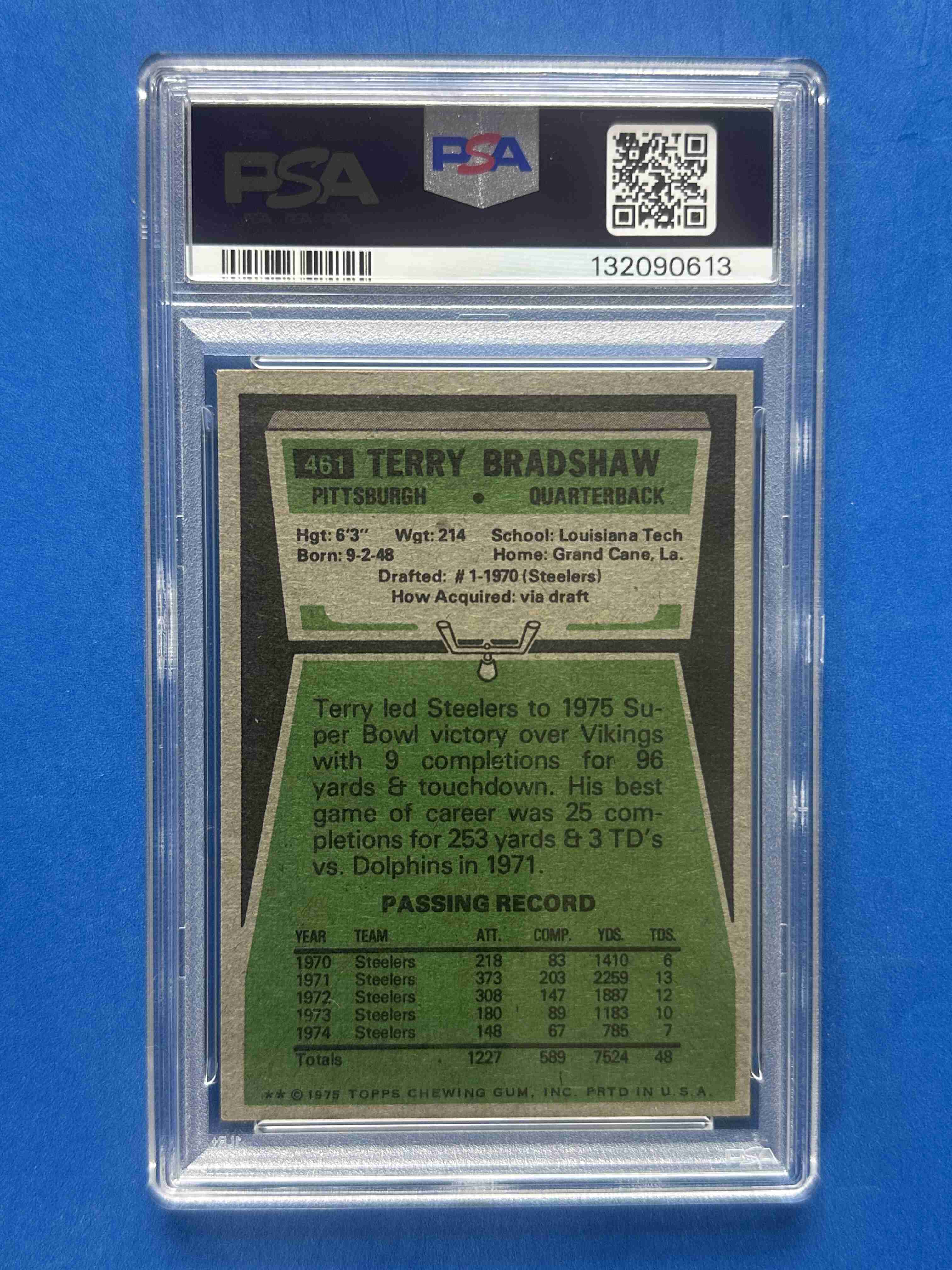 1975 Topps #461 Terry Bradshaw PIttsburgh Steelers NM PSA 7