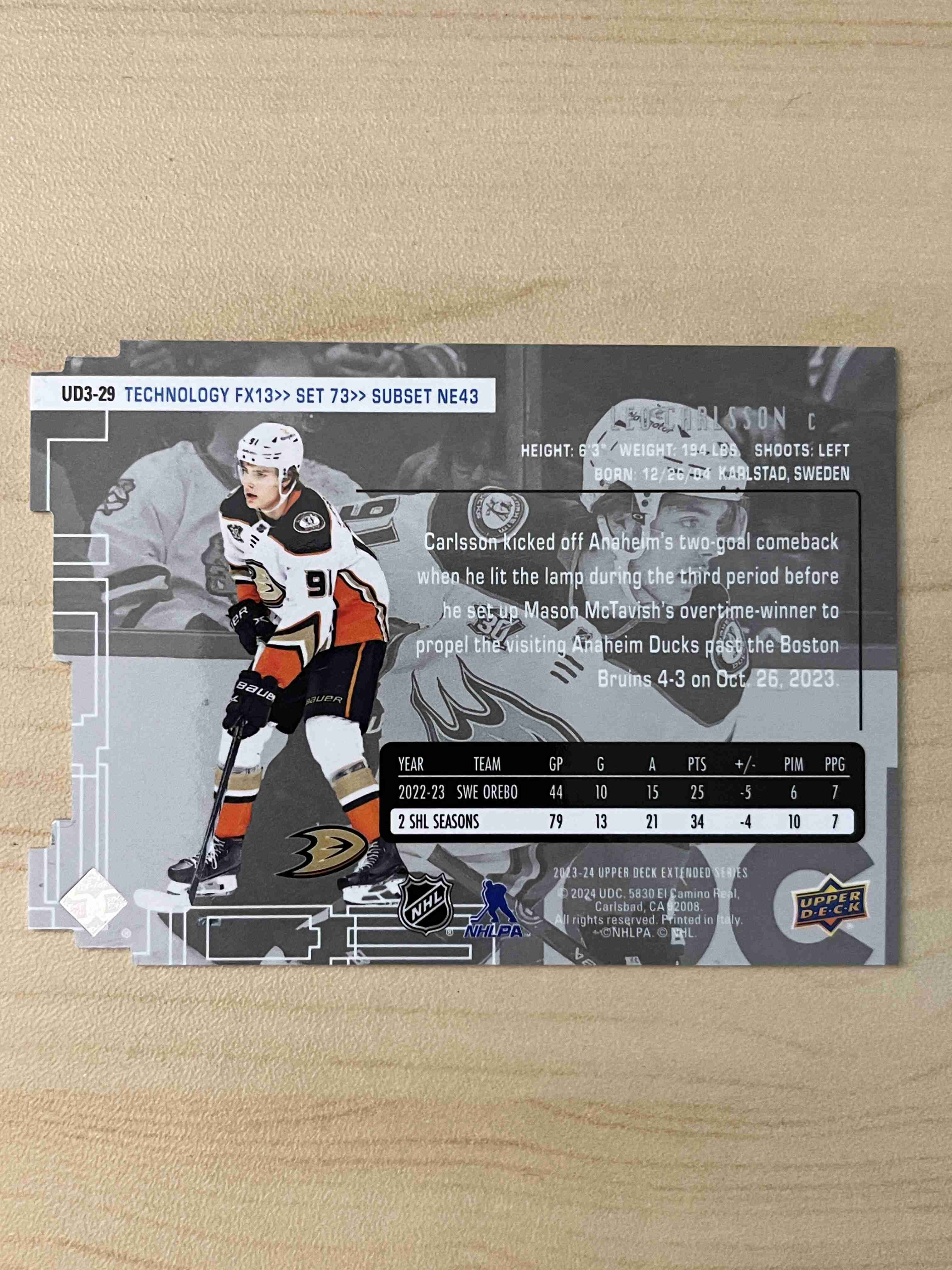 Leo Carlsson 2023-24 UD Extended RC UD3 FX