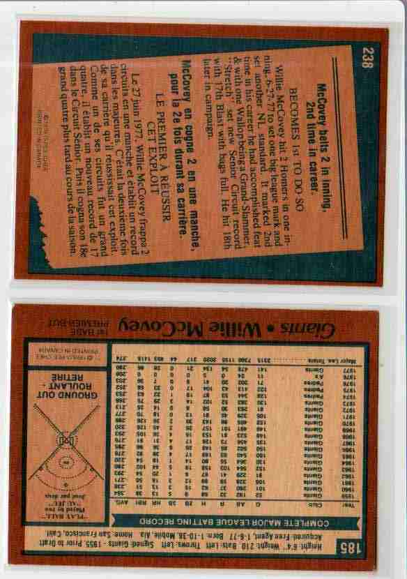 1978 Topps O Pee Chee Willie McCovey Base & Record Breaker