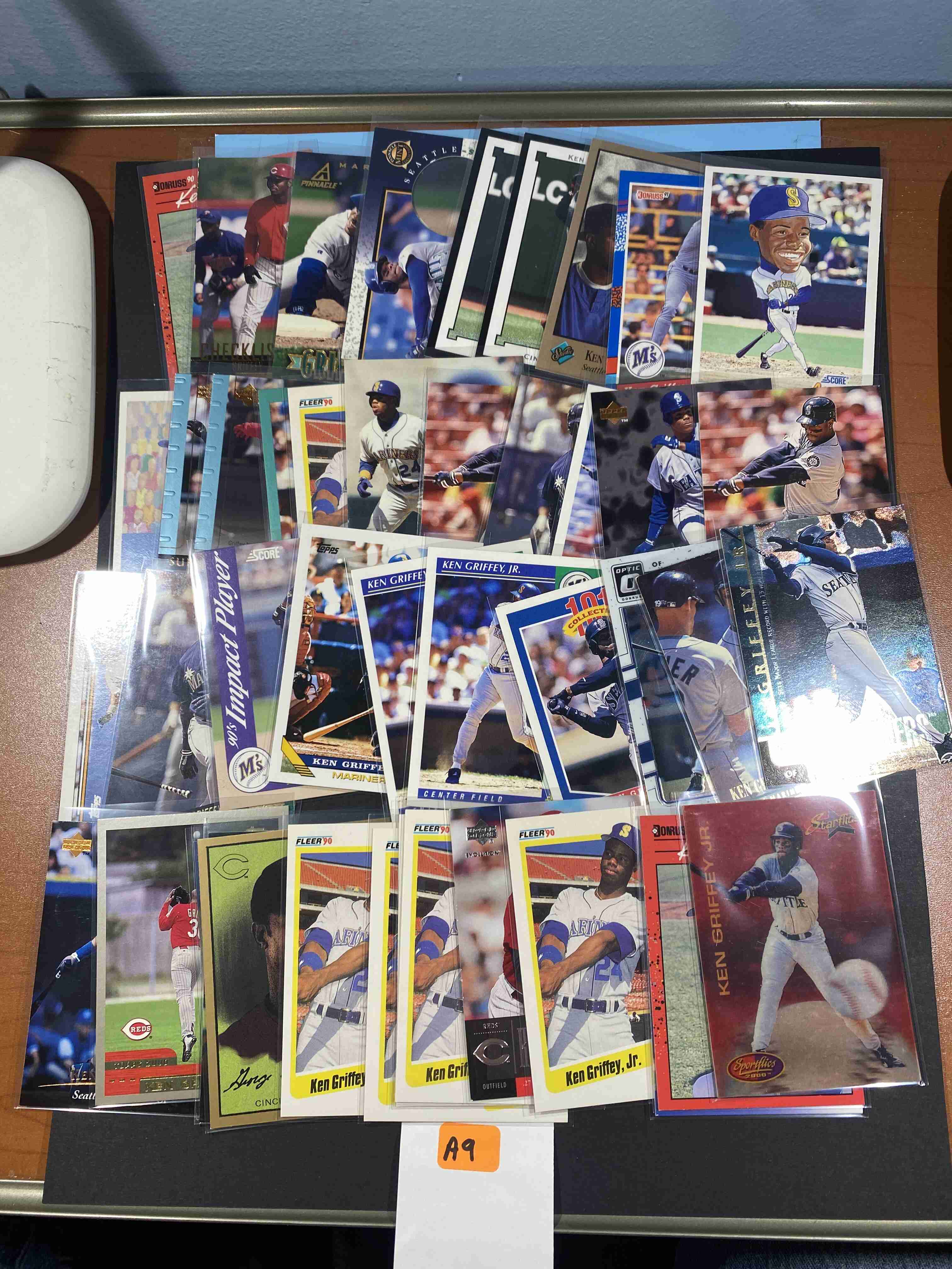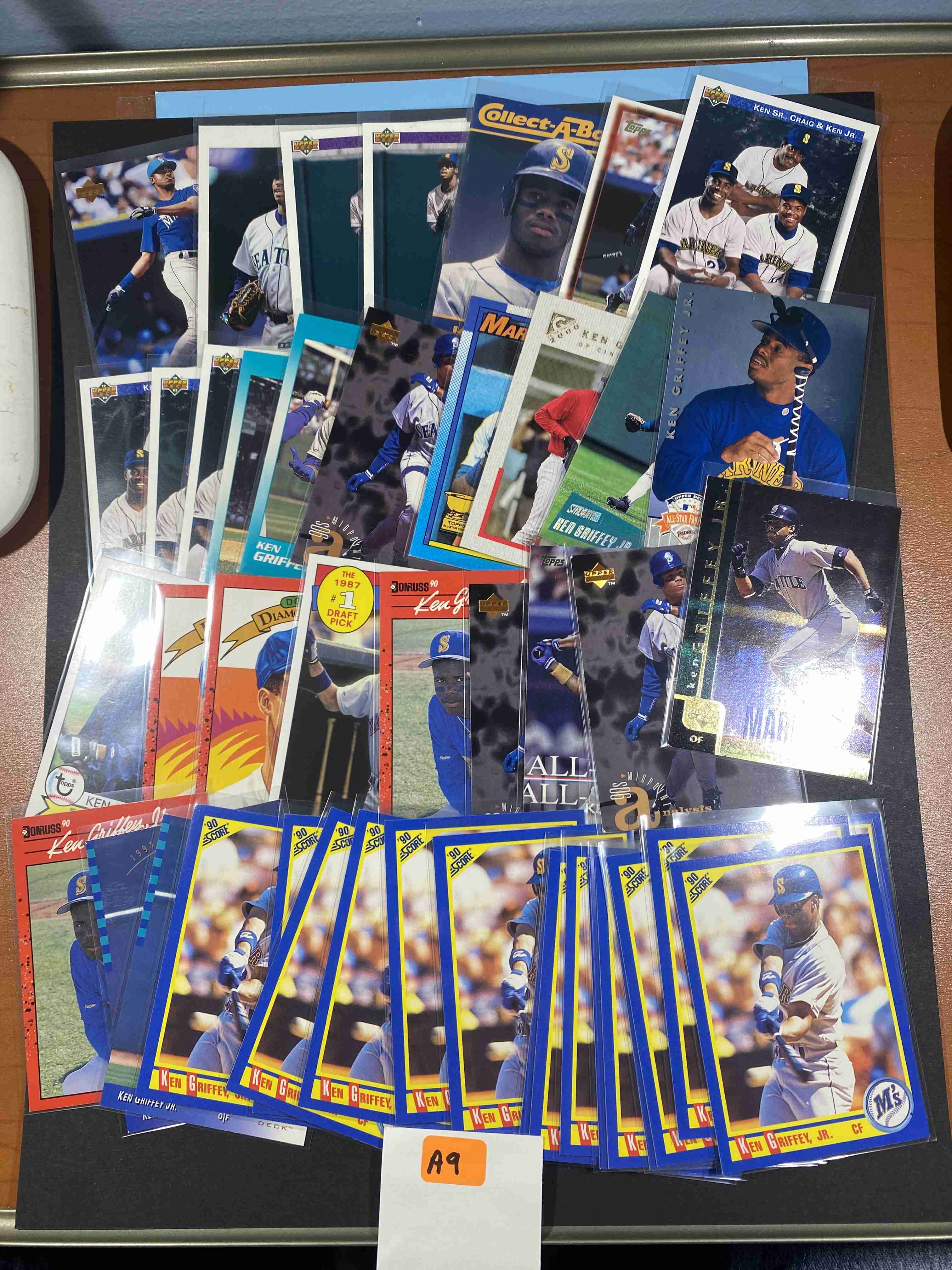 Ken Griffey Jr Lot of 90 Baseball Cards Various Years and Brands Most Cards look to be in NM-MT Condition. Please see pictures for details.