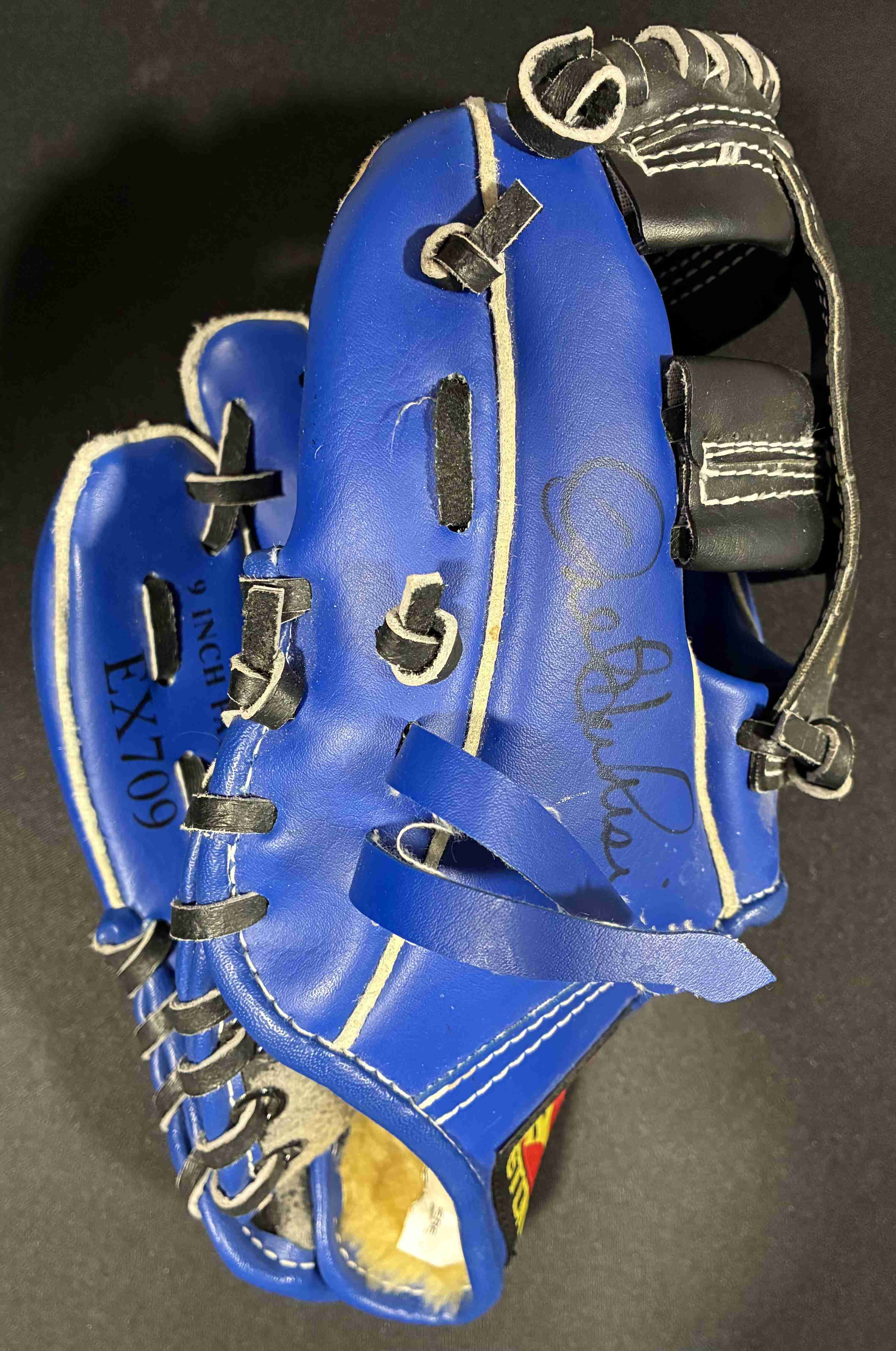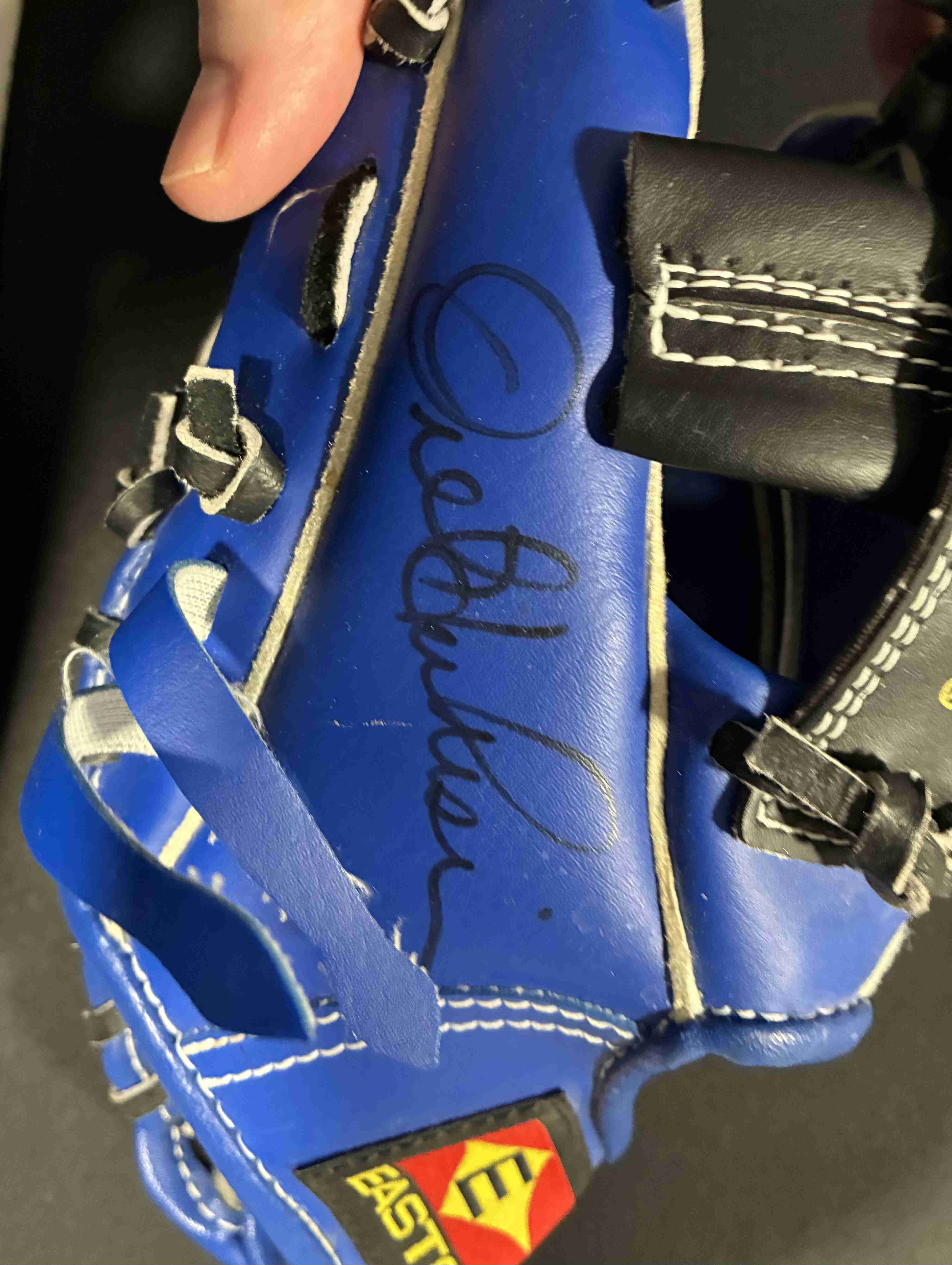 You are bidding on a Orel Hershiser Autographed Easton Blue Glove. This glove seems to be new, and is kid sized (about 10-inches long). Great for display, especially on the dodger blue color. I received this in a collection with many other autographed items. It looks to be a legitimate autograph, but unfortunately it is not authenticated. Please ask any questions before bidding. Thank you!